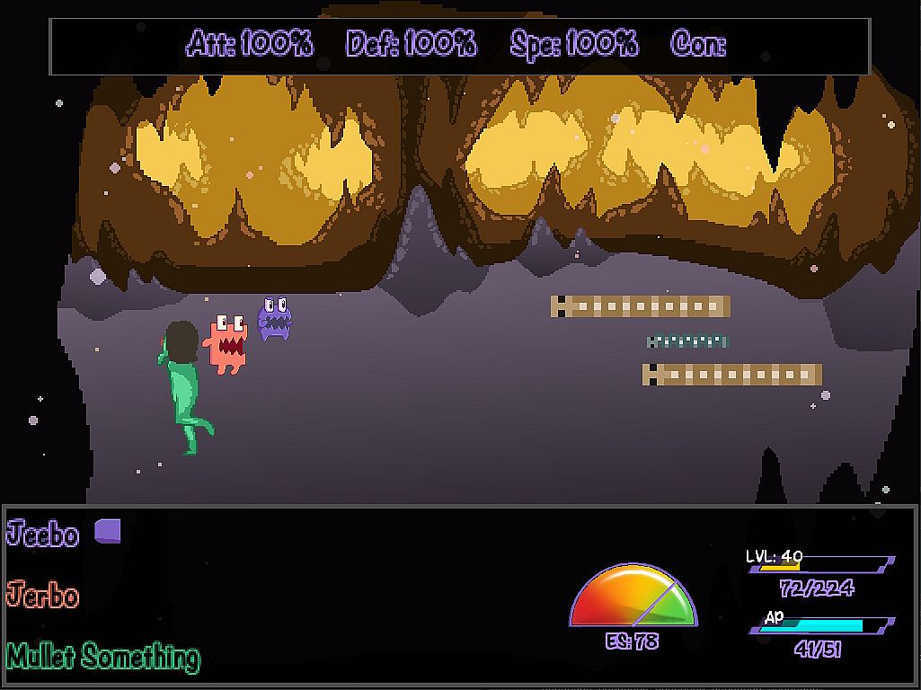 Jeebo & Jerbo vs. Life is a story focused Metroidvania/Party Based JRPG told in chapters! The overworld plays like a standard 2D Metroidvania where unlocking new party members allows you to access previously inaccessible locations due to their unique movement abilities! For example, Jeebo can wall jump, and Jerbo can pogo jump off of normally dangerous obstacles.
