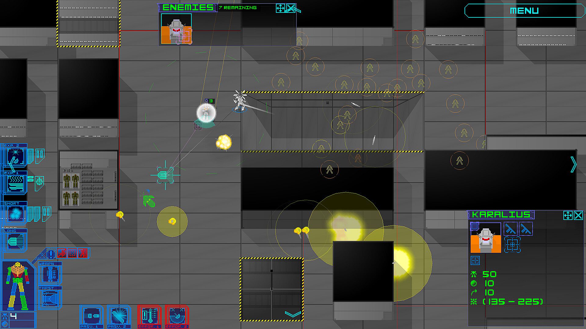 Two new abilities have been added for each player character. These come in the form of a back attachment for the maniple, complementing its capabilities or compensating for its weaknesses. To use these new abilities, click on the ability button on the left of the screen. This will trigger some abilities when the turn starts, while other abilities will require you to then select a target first.