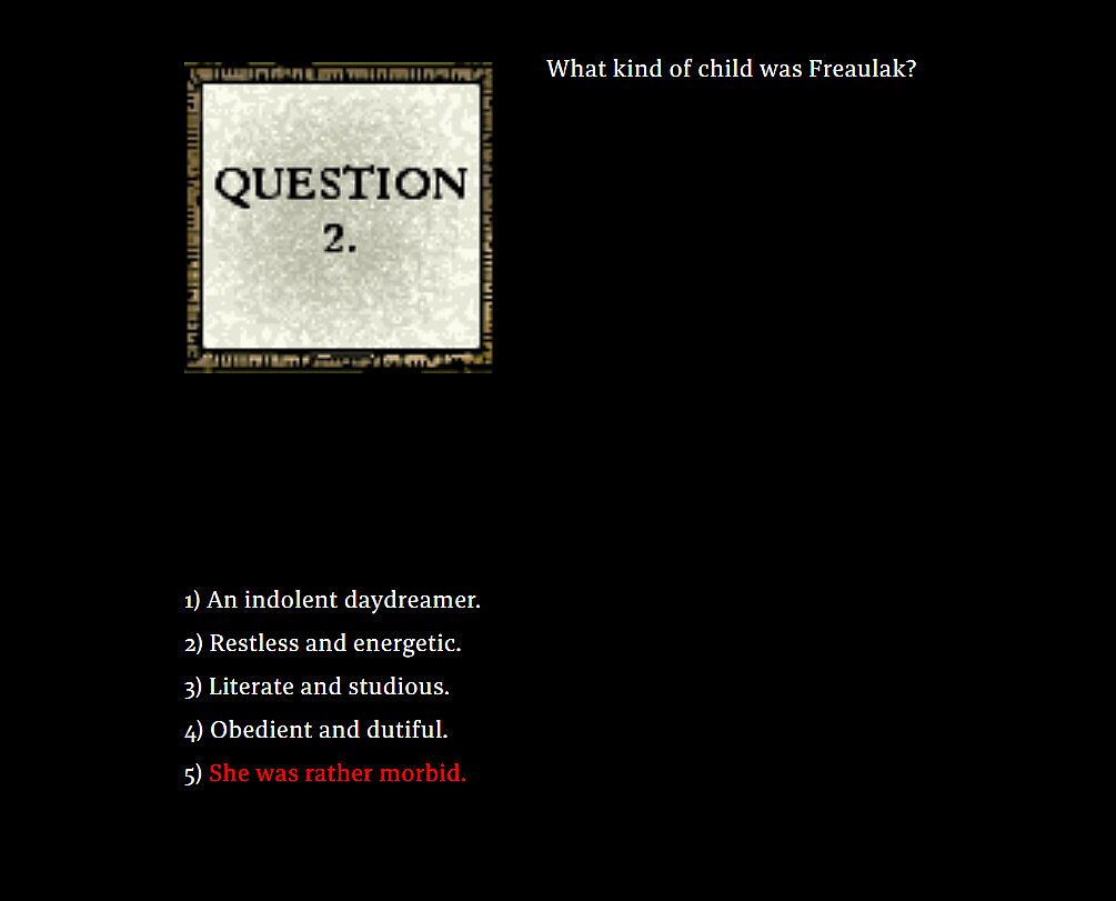 - Four new answers for the Seven Questions part of character creation