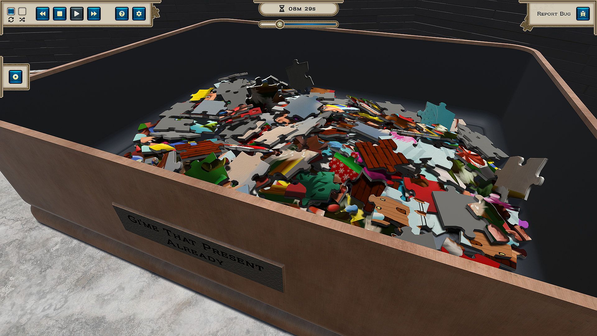 Dive into the festive challenge of Gi'me That Present Already, a fresh puzzle box from illustrator Stanislav Karmashukov in Masters of Puzzle. This indie casual simulation brings a Christmas-themed UHD image packed with engaging details to assemble in tile counts of 250, 500, 750, 1000, 1500, or 2000. Players build the puzzle across these variations for a relaxed yet rewarding experience. The artwork captures a holiday vibe perfect for getting into the Christmas spirit. Beyond standard completion goals, it offers a unique achievement for finishing any tileset setup. Beginners find it approachable while detail lovers enjoy the intricate illustration on PC.