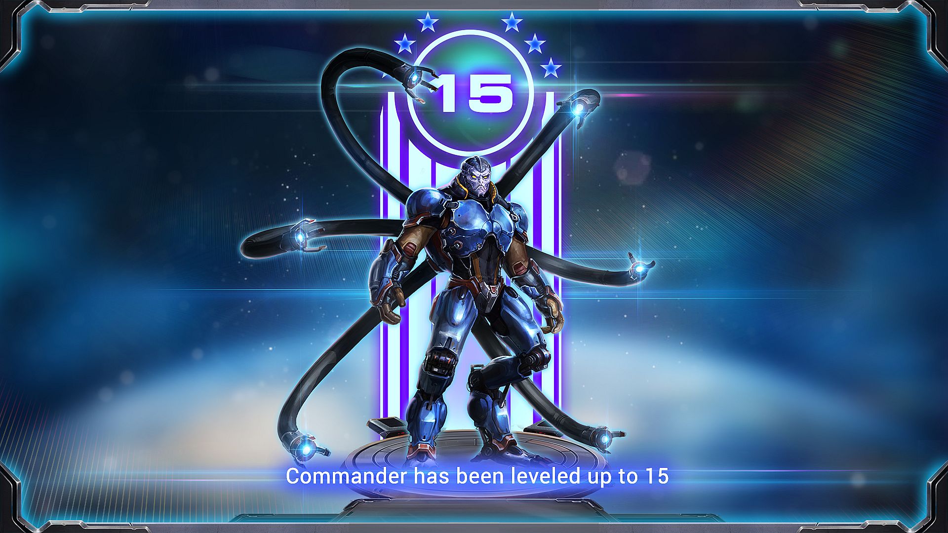 • Level 15 boost for Tel Machus the Fallen, the Hierarchy Сommander, which includes the base cards and modules set.