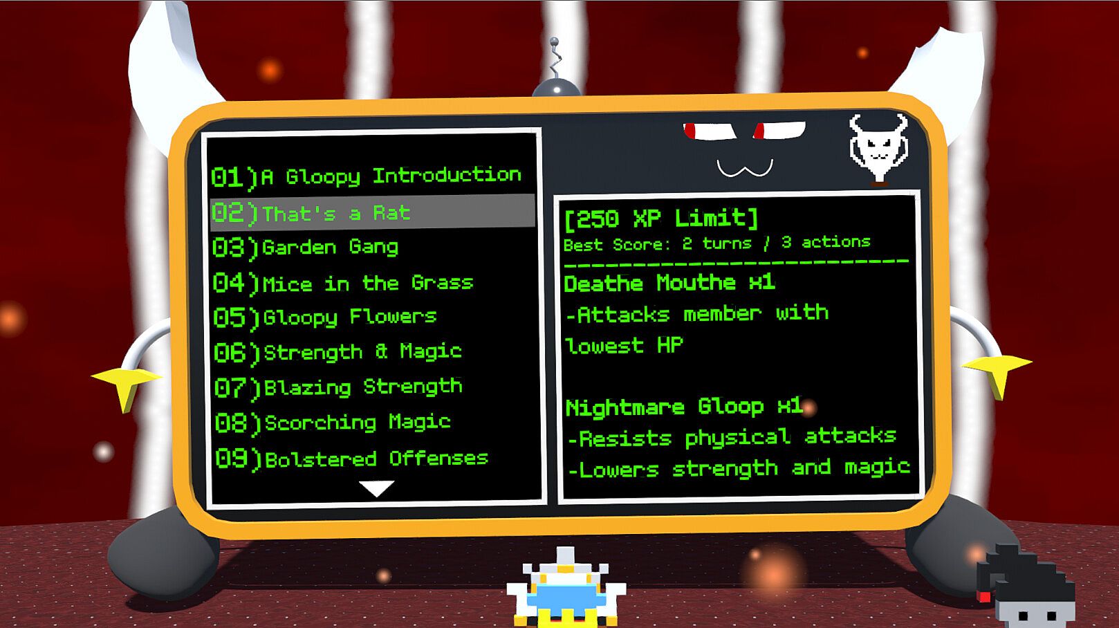 Aru, Nate, and Tator enter a dimension of nightmares, encountering the Scream Screen and the Concierge before stepping into the Nightmare Arena. Players face over 40 tough battles against enhanced, twisted versions of past enemies, culminating in a brutal superboss fight with a recognizable foe. Earn prizes like new summon skills that hit all enemies and carry over to the normal world. Battles limit XP spending to block grinding, demanding sharp strategy in this indie RPG adventure. A free base game update adds a sticker collection feature-gather stickers from foes, view them, and arrange in a book, with nightmare variants exclusive here. Skilled players who master precise resource use will thrive in these high-stakes challenges.