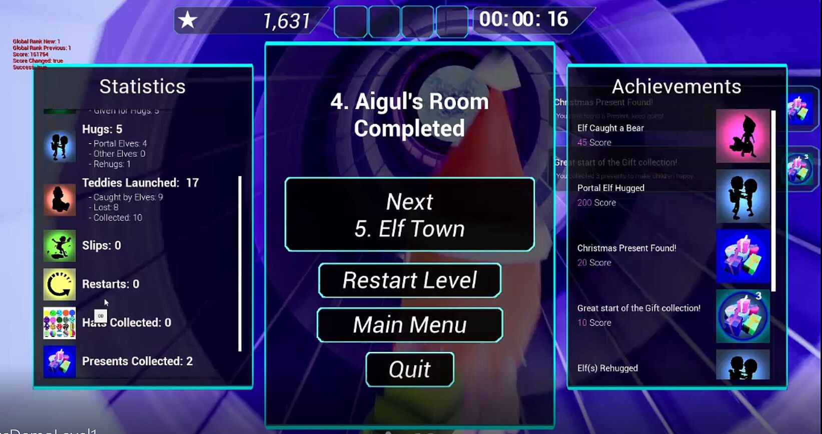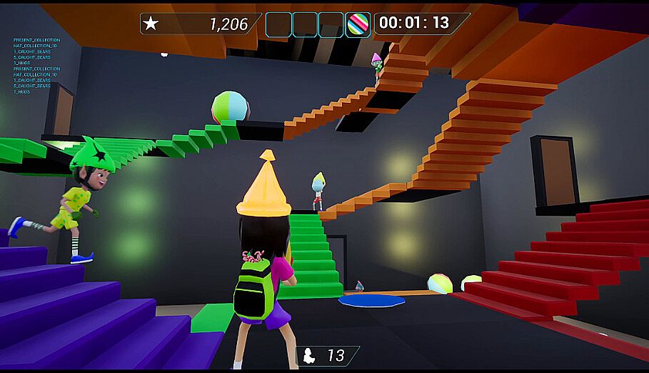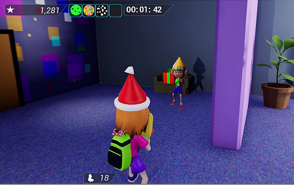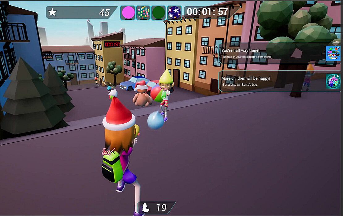 - To pass levels you need to open portals; to do that you hug 4 key elves, and in return they get a candy cane.