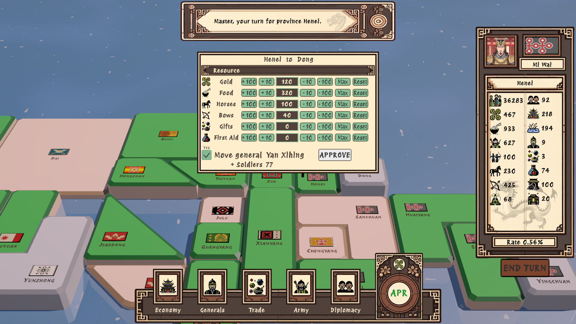 Deep Province Management – Control resources like Soldiers, Crops, Food, Horses, Bows, and Arms. Train troops, reward generals, search for hidden talent, and expand your war machine with extra help from mining, trade, and a savvy traveling merchant.