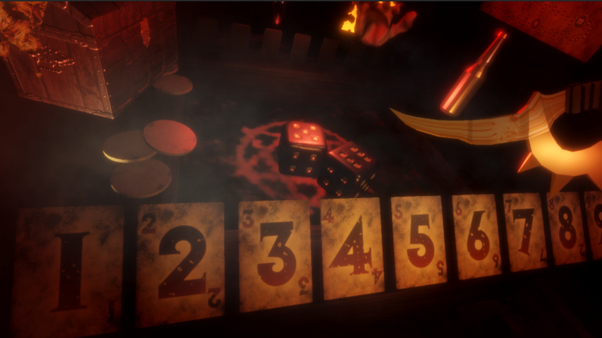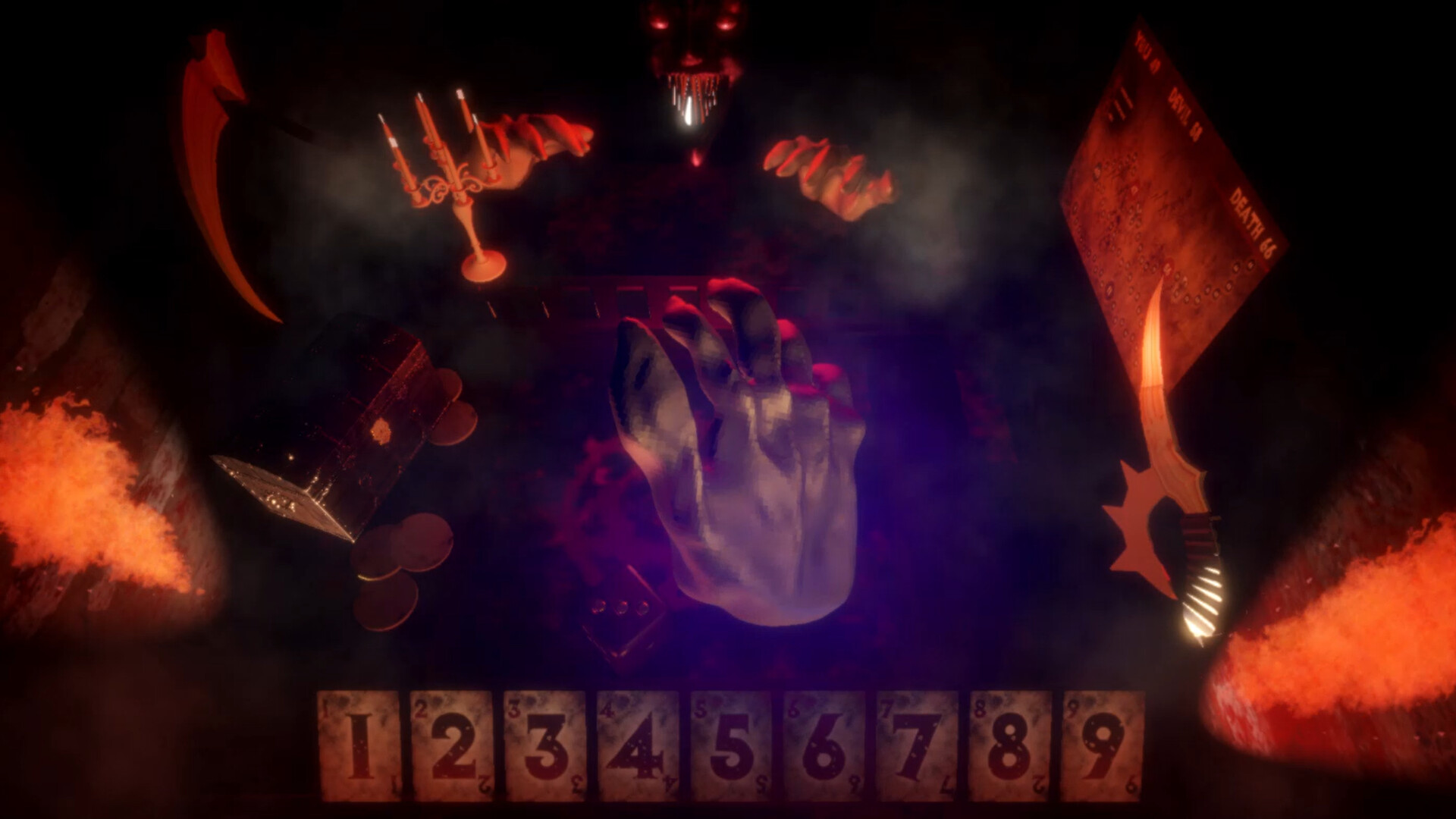 W Piwnicy 66 klasyczna gra w kości zamienia się w pojedynek na śmierć i życie. Ty i Diabeł na zmianę gracie w przeklętą wersję „Zamknij Pudełko”. Każda zamknięta liczba popycha cię do przodu na planszy. Haczyk? Jeśli dotrzesz do 66. pola przed Diabłem… giniesz.