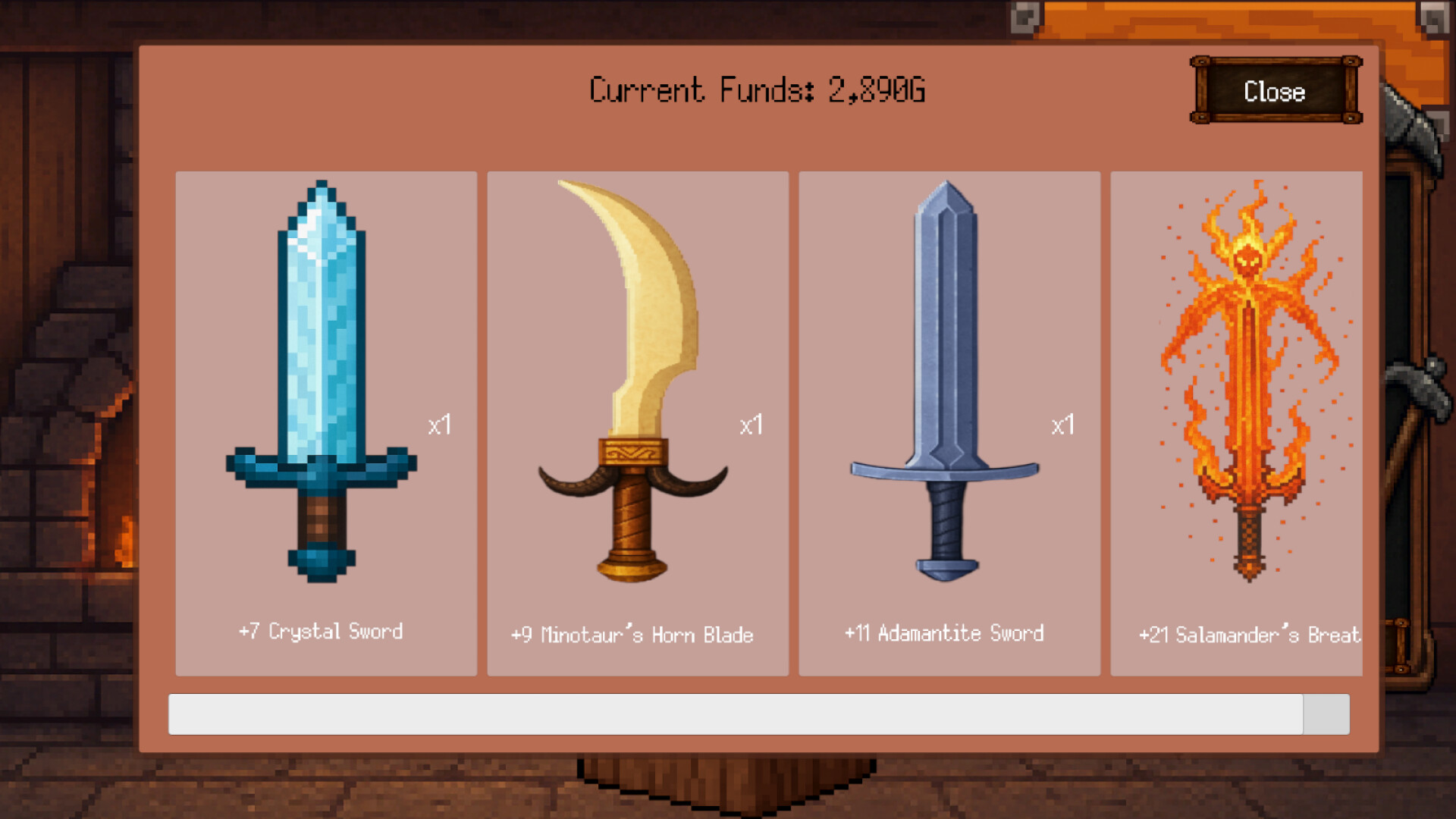 Ulepszone bronie odpowiedniego poziomu można przechowywać w magazynie i sprzedawać w sklepie. Sprzedawaj broń, gromadź fundusze i zbierz wszystkie księgi umiejętności!
