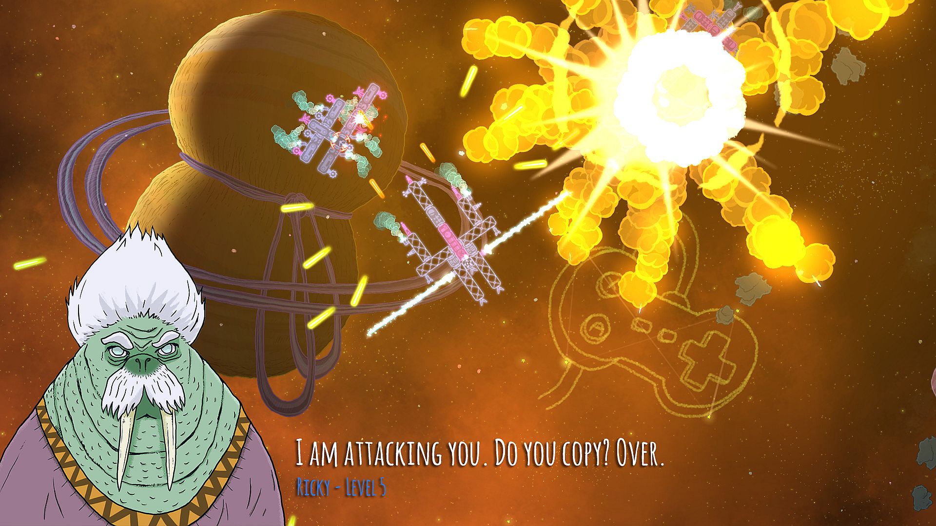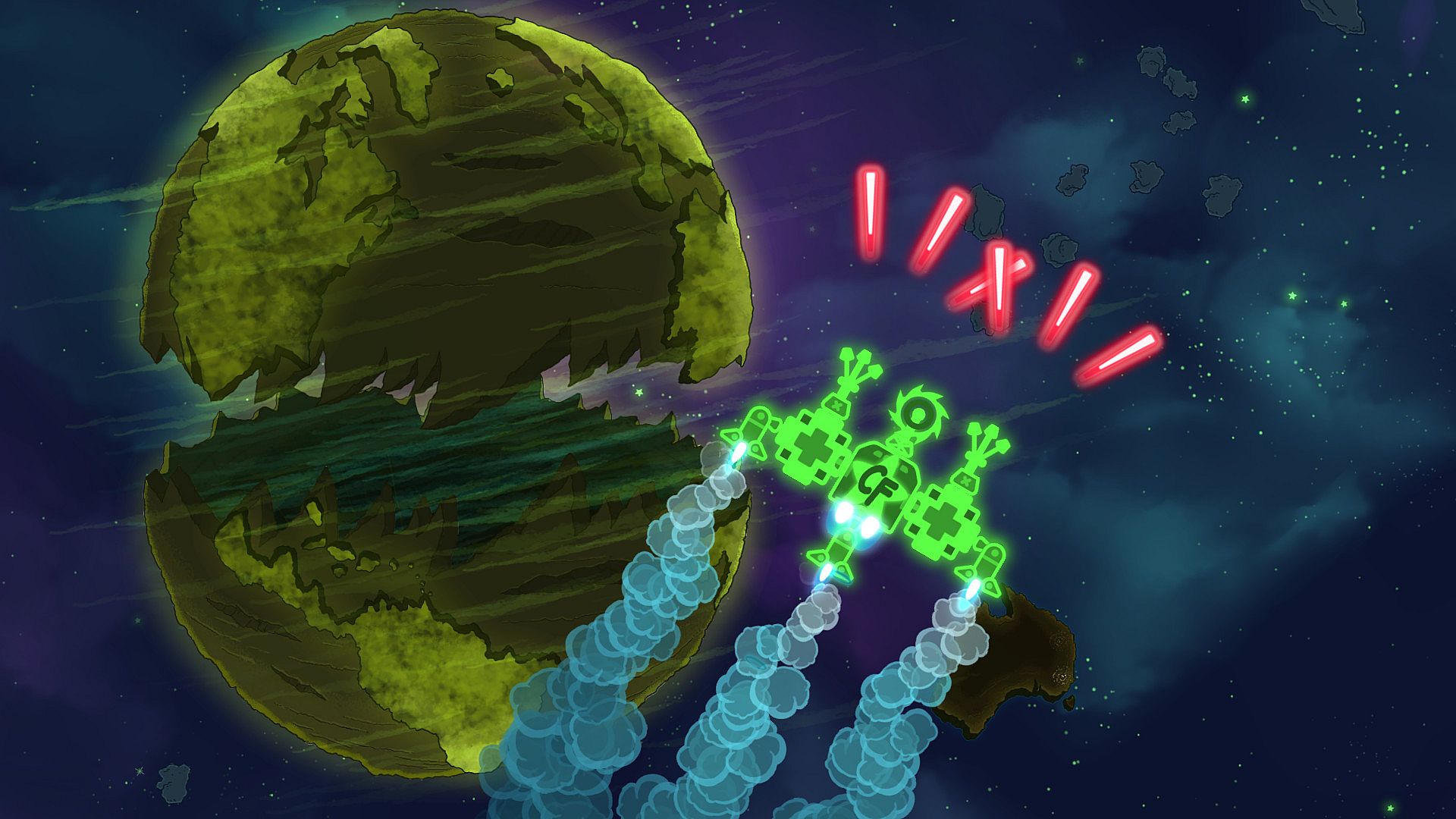 You better build a pretty tough ship, because you're gonna need it. Your little brother turned into a bubblegum mutant and is being a total butthead. He froze the Sun, poked out Jupiter's eye, drank Neptune's oceans, and cracked Earth like an egg! Set off across a messed-up Solar System to put a stop to the big jerkface once and for all!