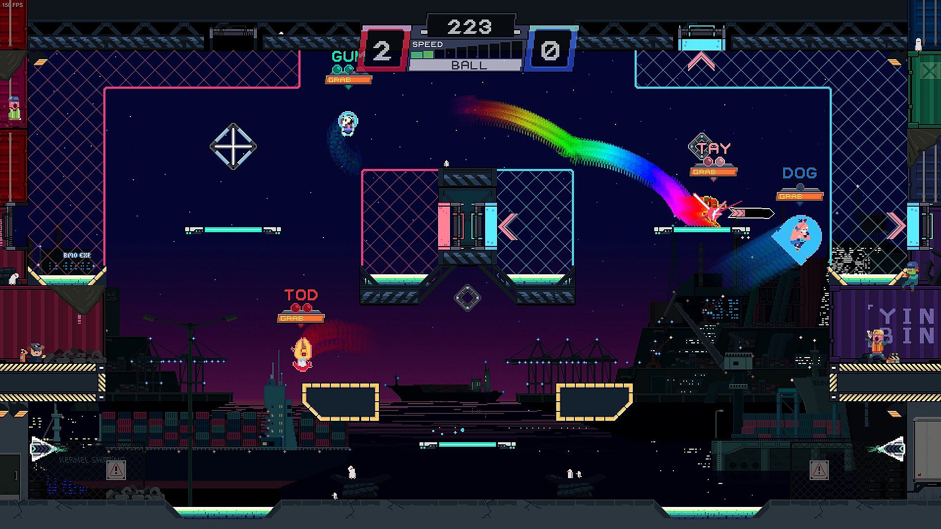• 7 playable characters. Find your preferred playstyle by experimenting with unique speed, agility, jump, grab, dash, fastfall and gravity values