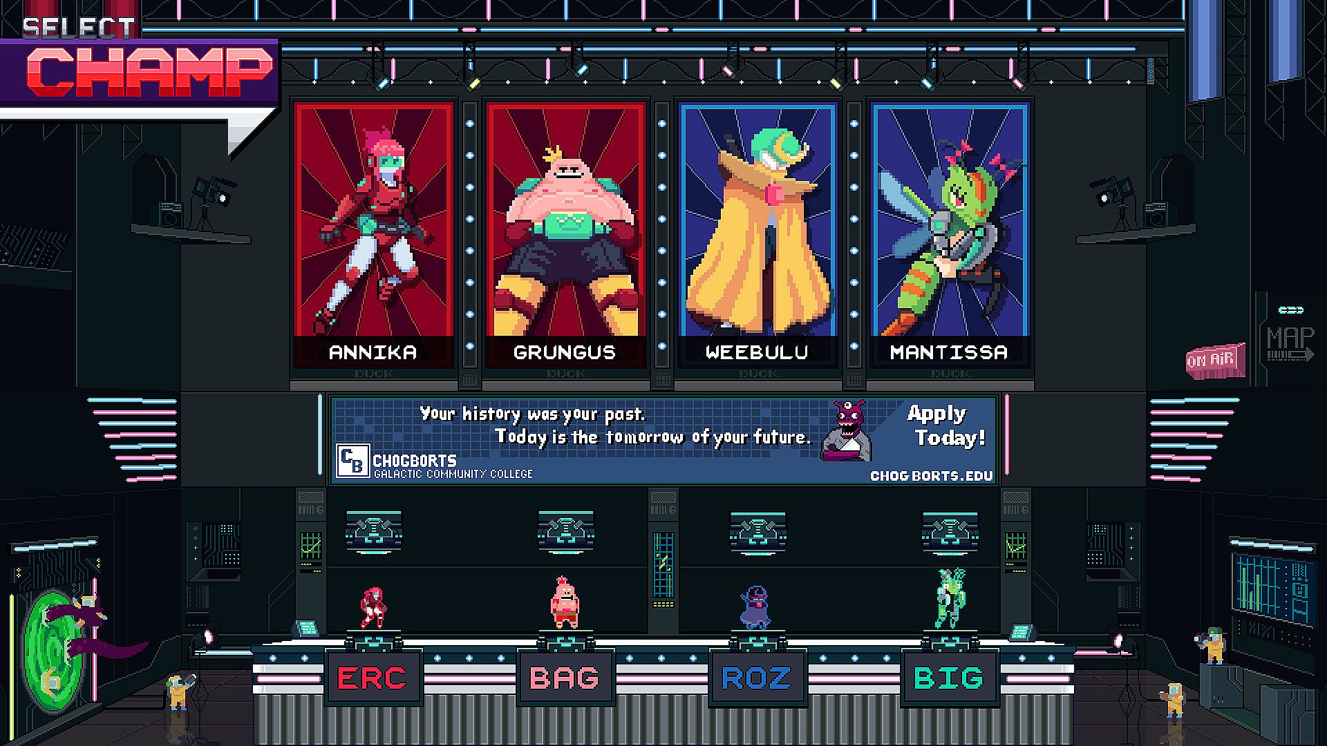 Crucial Throw is a 2D sports platformer where athletes from across the galaxy compete in high speed competition. Choose from seven unique competitors, as they battle to resolve age old conflicts. Each playable character has unique stats and skills that must be utilized to secure victory.