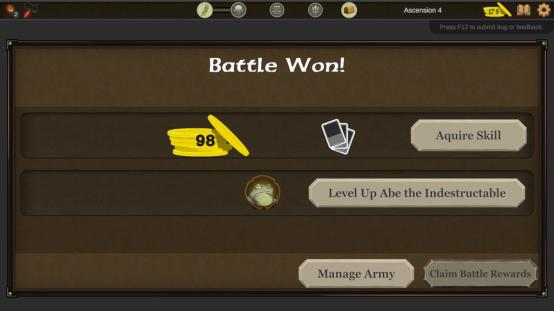 - Many strategies between unit, building, artifact, leveling, card selection, and upgrade choices.