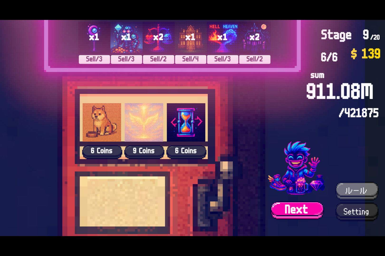 Fuse items and rare cards for skyrocketing score multipliers.