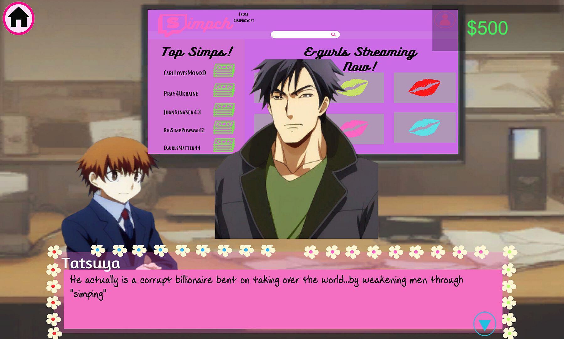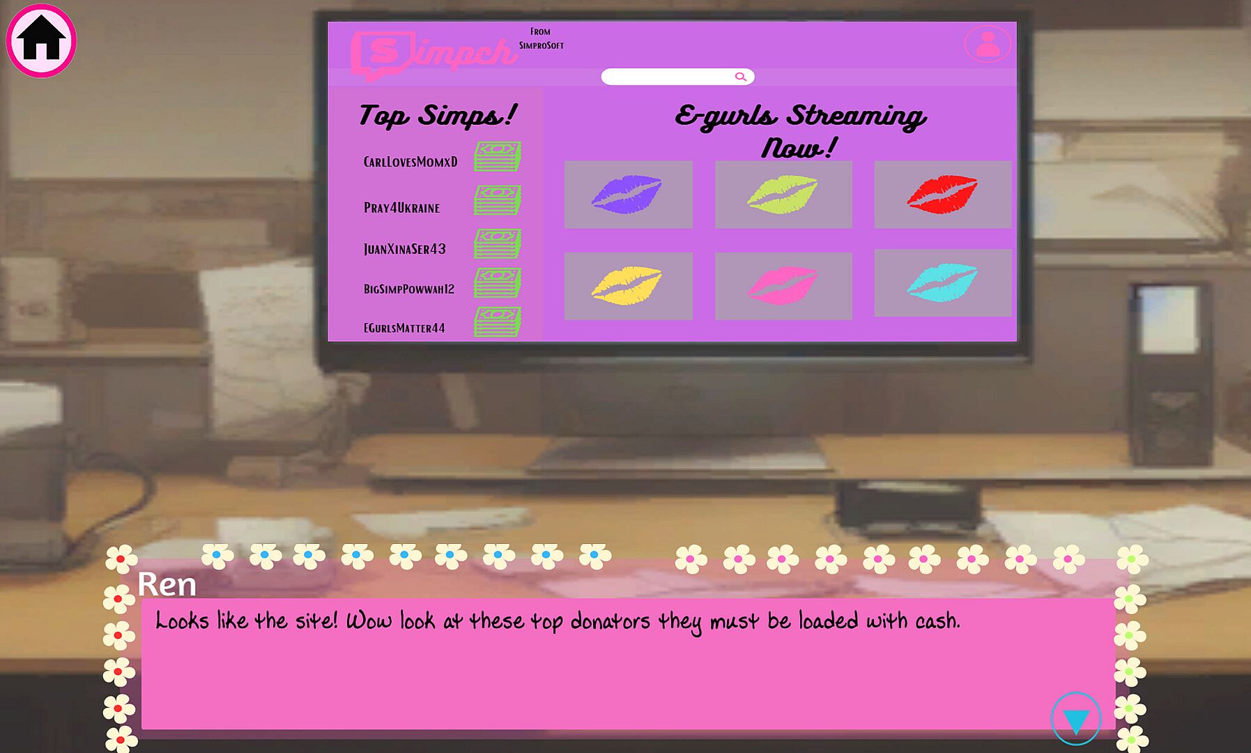 Ren is your typical simp...a luckless loser constantly getting stepped on by everyone. One day he was simping for a hot e-girl on a new popular streaming site and *poof* all his money is gone. Little did he know that his simping would be needed to save the world. Join him in this epic simping adventure in a new form of visual novel literature.