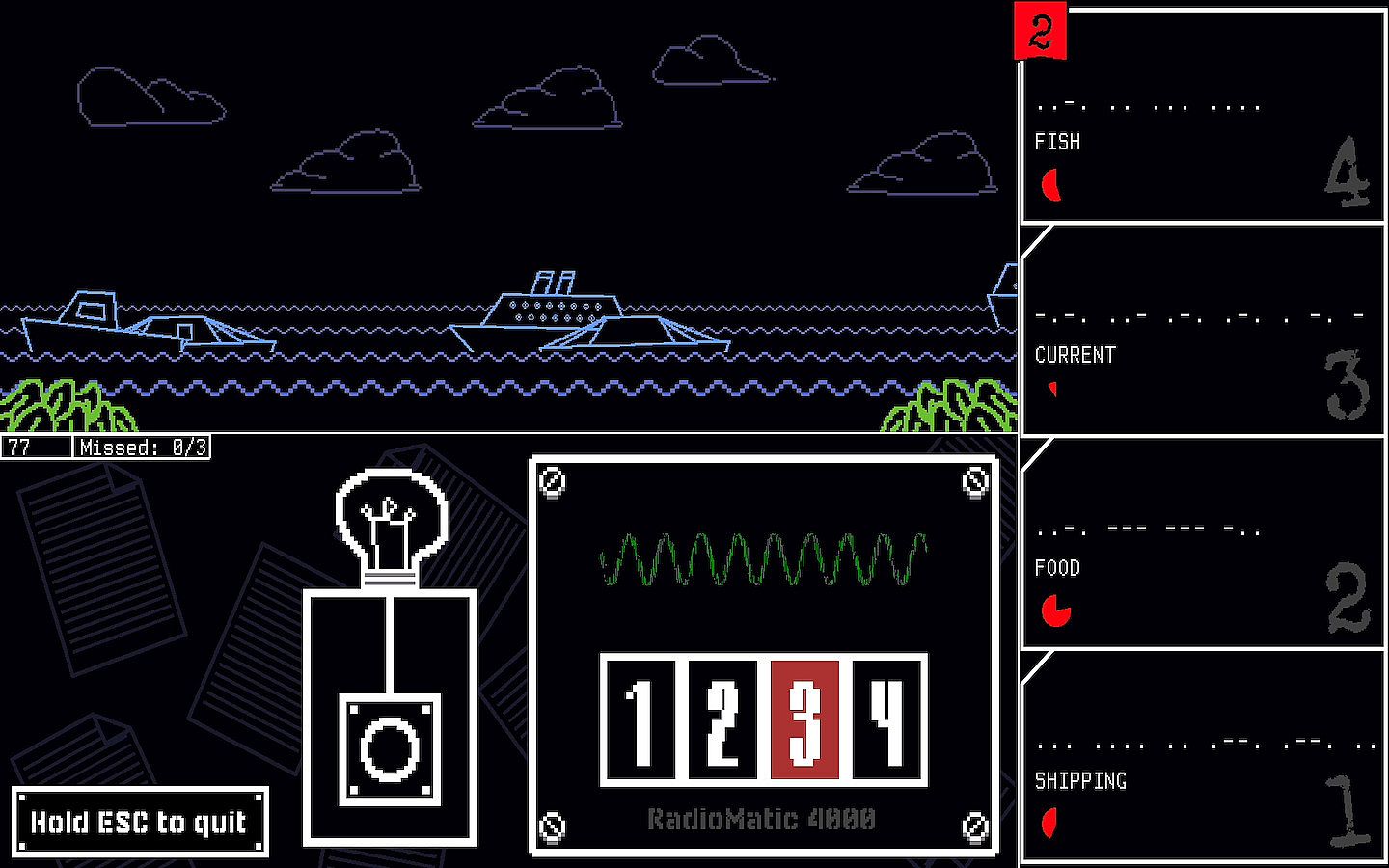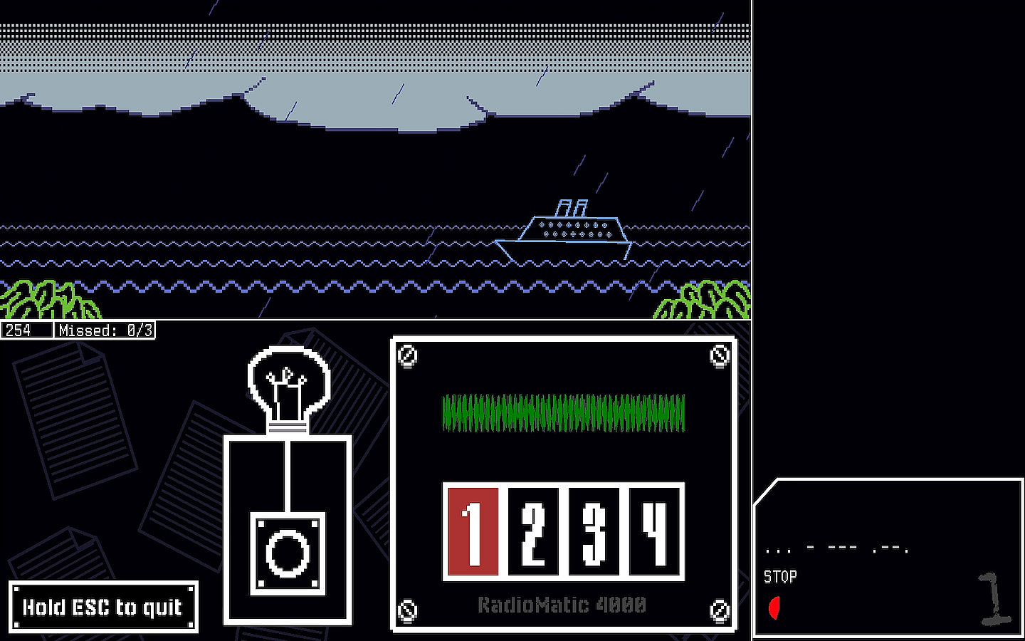 Take the role of a lighthouse operator, and use your spacebar to send Morse code messages to ships in the sea. Be quick and keep your boss satisfied, until his highly expensive cruise ship starts to sink! Can you save him and the passengers with your Morse code clicker?