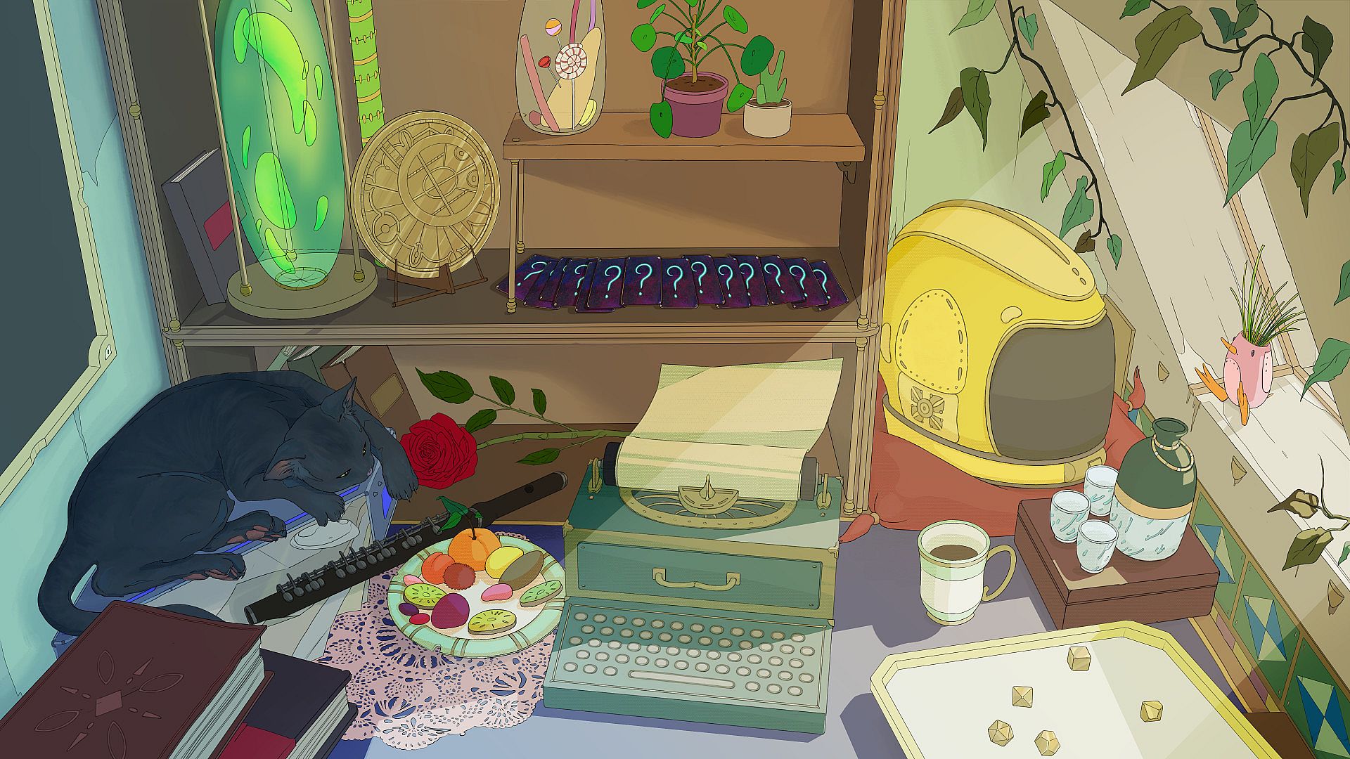 Dice in hand and perched on this desk, the Author of Facettes invites you on a journey of identity initiation. At your fingertips is a dreamlike world, populated by heroines, Potentials and life paths to discover.The Author keeps creating more Potentials using tabletop RPG mechanics: roll a dice and assign values to various characteristics in the process of character creation.