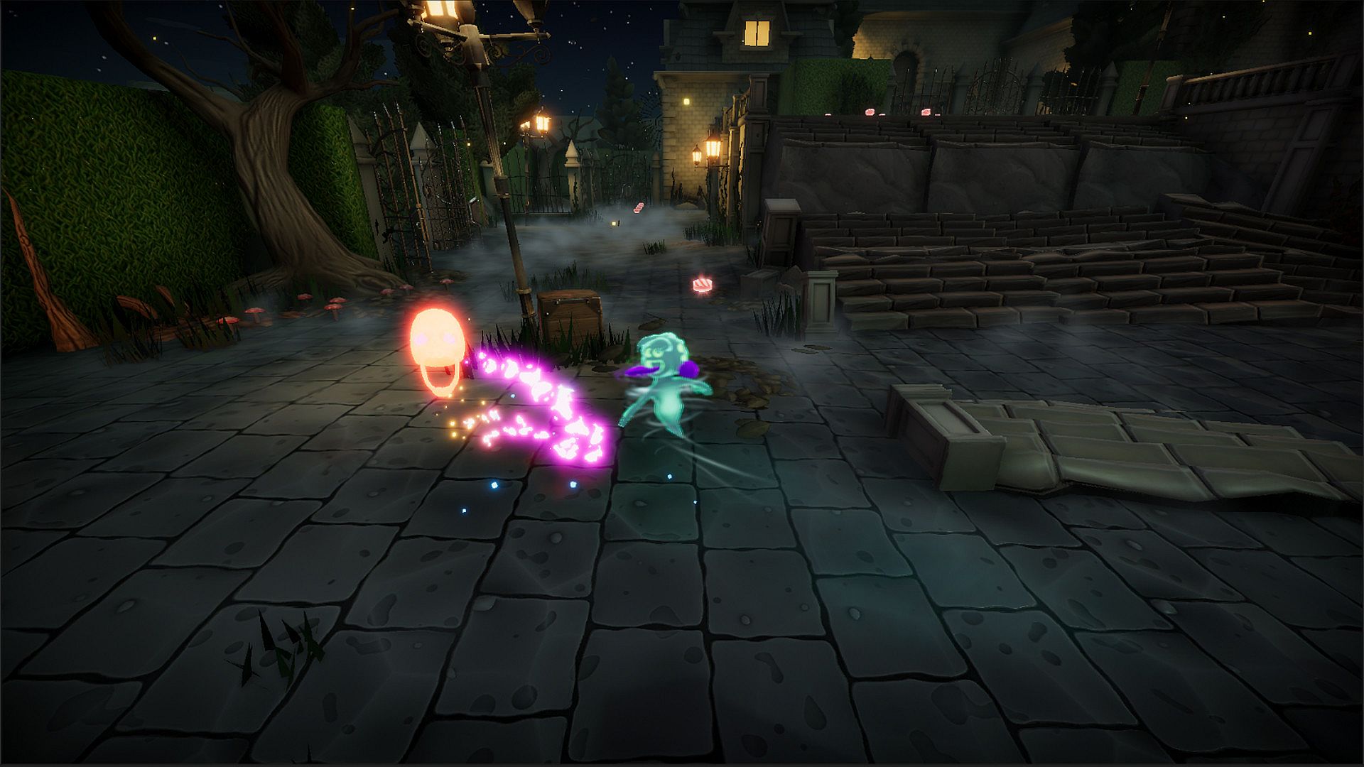 Fifo's Night propose du platforming 3D classique dans un manoir enchanté et immense, imprégné d'une ambiance effrayante. Guidez le protagoniste spectral Fifo à travers des salles élaborées, des jardins luxuriants, des labyrinthes sombres et des bibliothèques tordues pour traquer les Magical Candies perdus. Affrontez monstres et boss corrompus en résolvant des puzzles à la fois drôles et corsés, tout en chassant des collectibles cachés. Ces niveaux gigantesques regorgent de détails, de zones secrètes, d'obstacles ardus et d'ennemis pleins de personnalité. Récupérez divers types de collectibles pour rétablir l'ordre dans le Candywood Mansion. Ce casual adventure indie s'adresse à tous les publics en quête d'exploration légère et de défis de platforming précis.