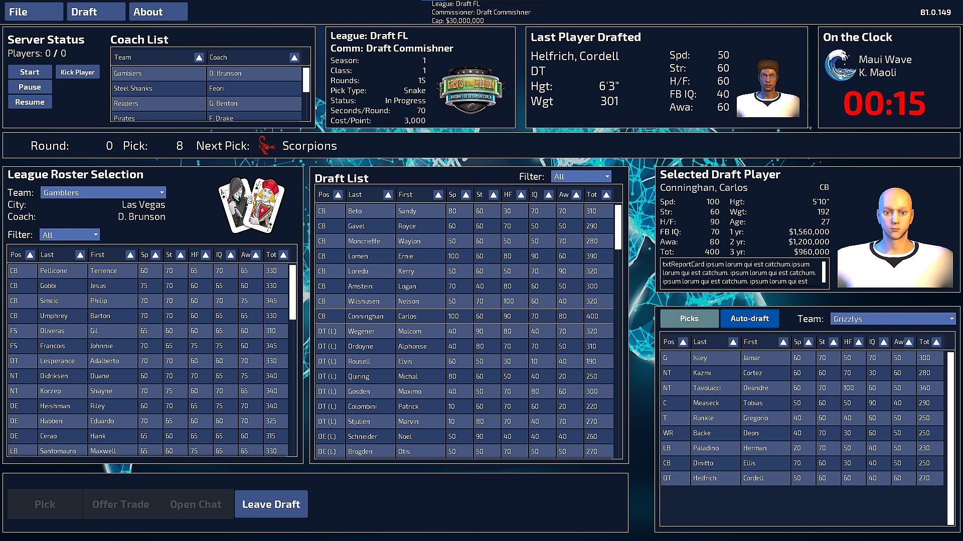 Pit your abilities and eye for scouting talent and strategically build your team from a pre-generated list of players, in real-time, as General Manager against other savvy coaches within your league or the AI teams.