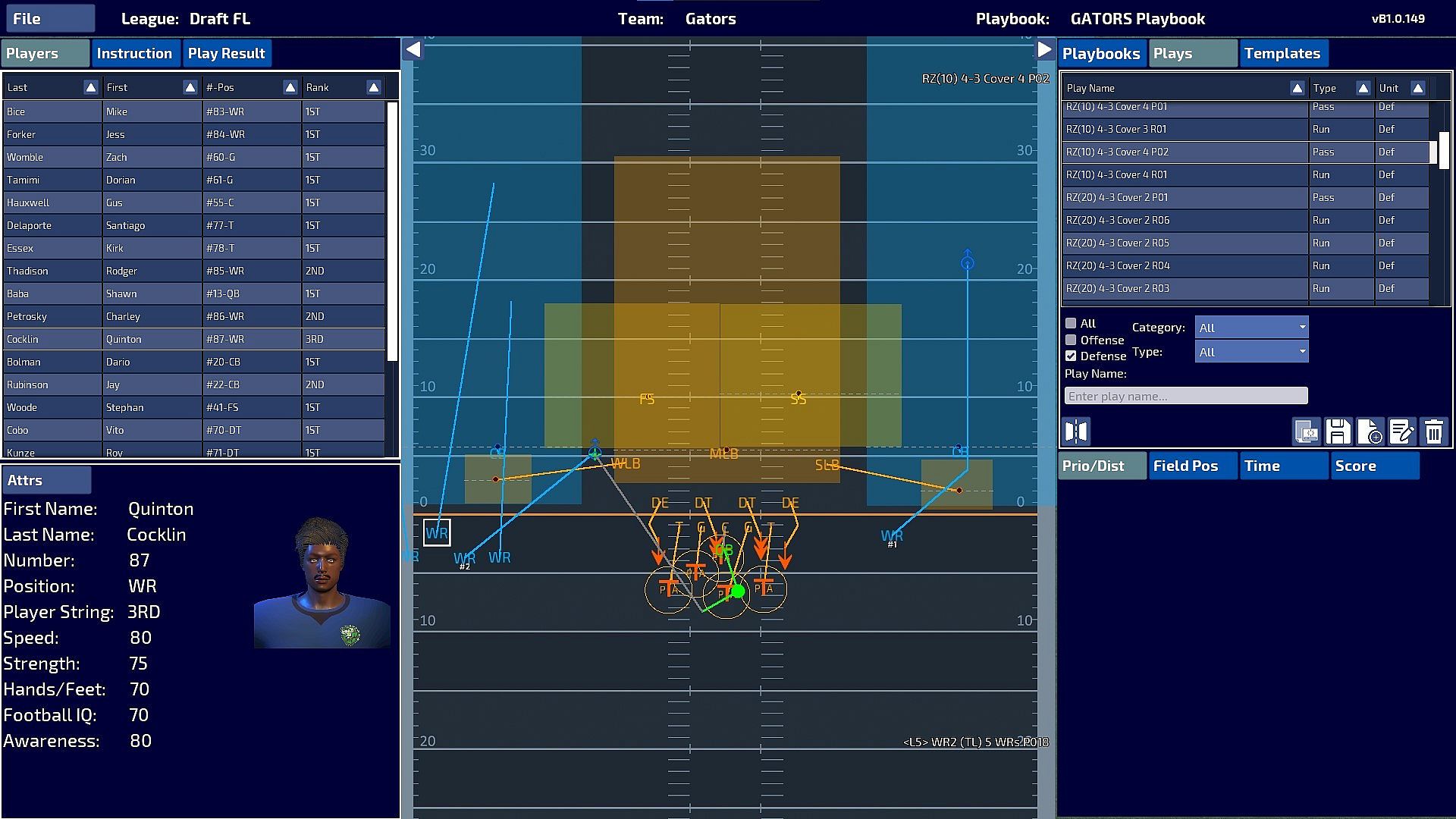Use any of the pre-generated templates for some basic formations and then customize them any way you want to implement your offensive or defensive philosophy.