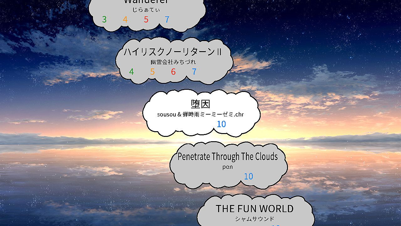 Dans le royaume de l'au-delà «楽園ノ郷», les anges arborent des halos uniques - anneaux dorés, cercles magiques, engrenages, donuts, pneus, CD et yeux de typhon - qui ont perdu leur éclat. L'ange Harp, au halo en anneau doré, découvre le problème : les sources de lumière nommées «notes» à l'intérieur des halos fonctionnent mal. Sur les conseils du Dr. Unfeathered, Harp se lance dans le traitement des halos pour leur redonner tout leur éclat. Les joueurs tapotent pour guider les notes noires à l'intérieur des cadres de halos et les notes blanches à l'extérieur, les transformant en notes dorées. Ce indie early access sur PC propose une boucle rythmique centrée sur la récupération des halos. Parfait pour les fans de défis précis basés sur le tap.