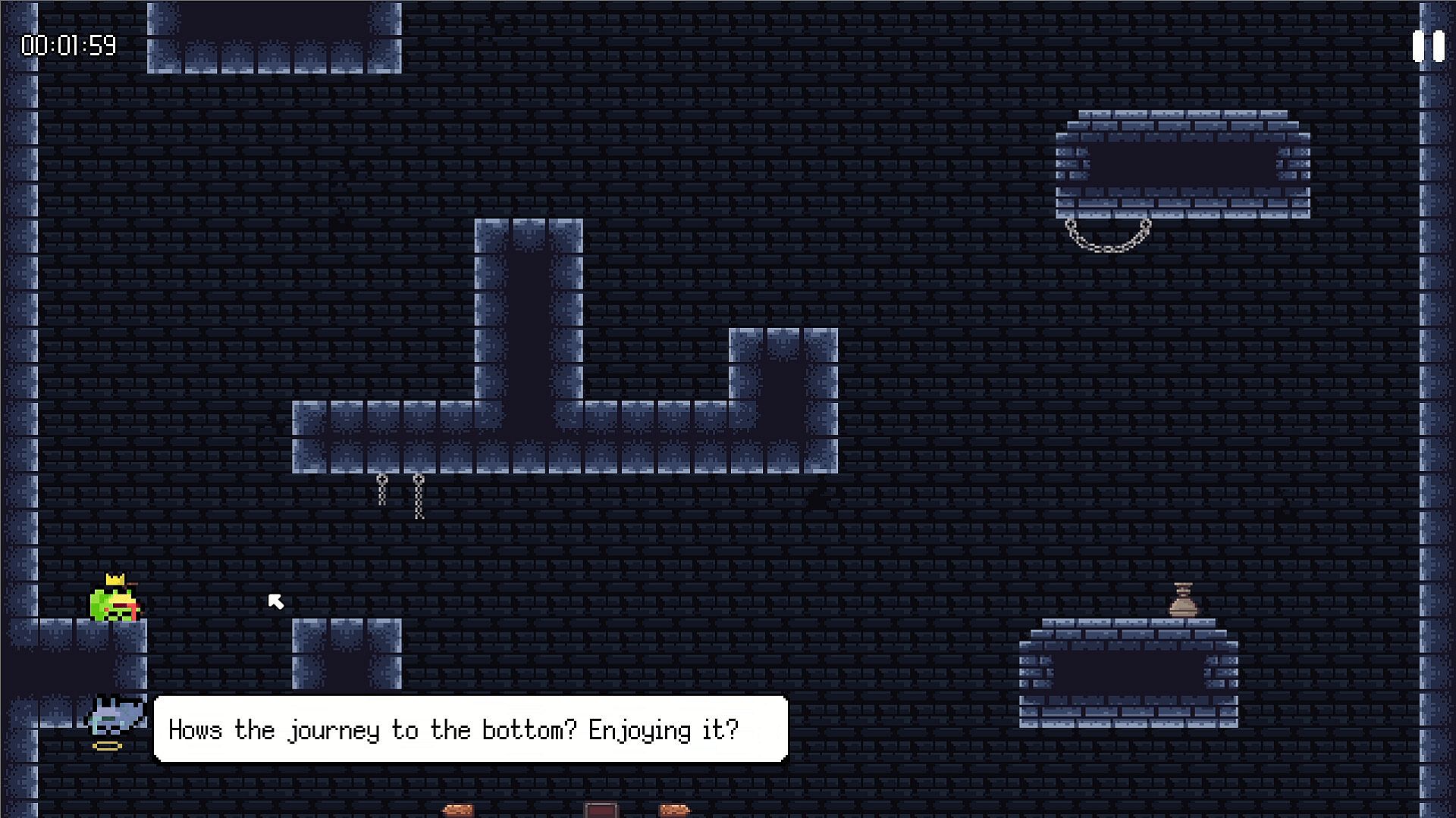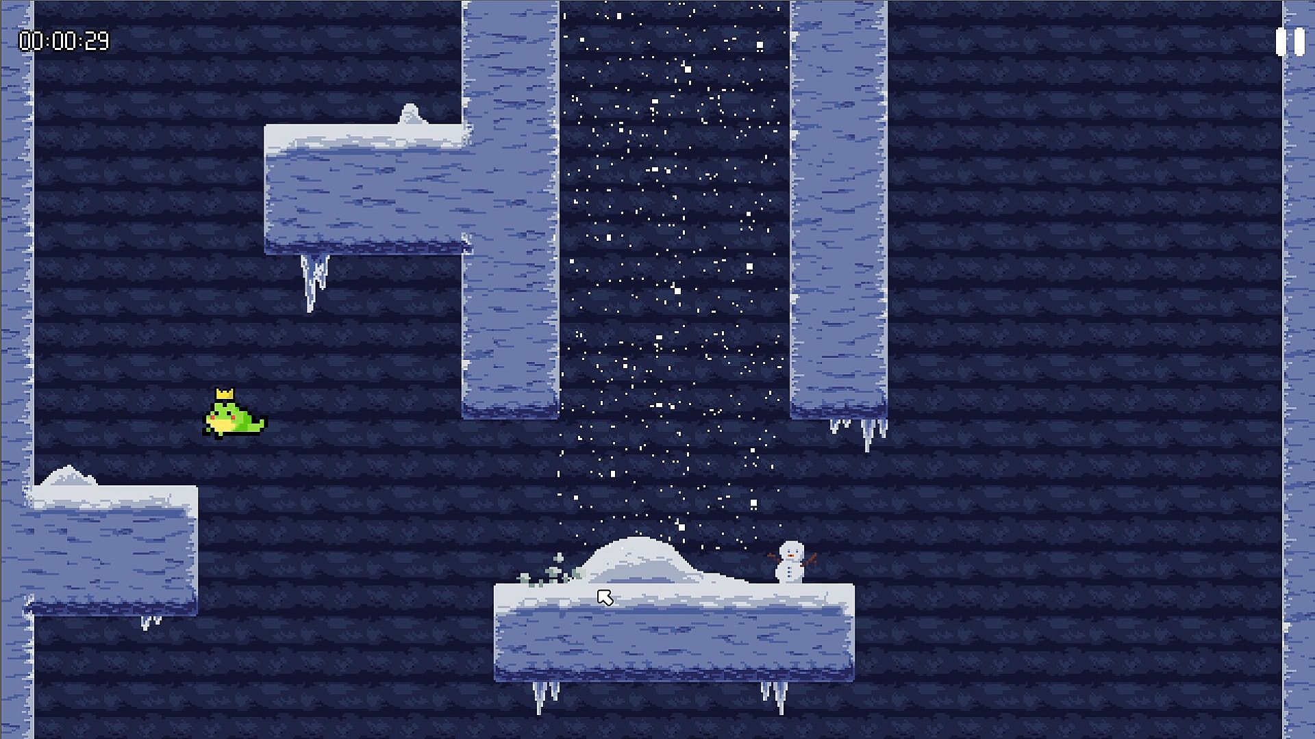 But hold up, there’s more to this than just hopping around. Where’d this crown-wearing frog come from? Why’s it snowing inside a well? What’s waiting beyond the walls this little guy’s so desperate to escape? And most importantly—what’s the deal with this mysterious pit? Buckle up, because this journey’s got questions galore.