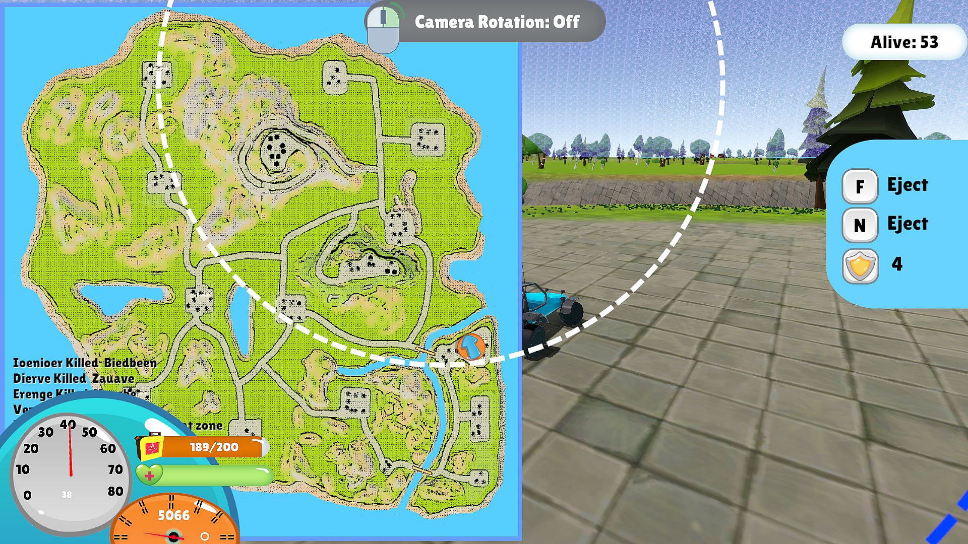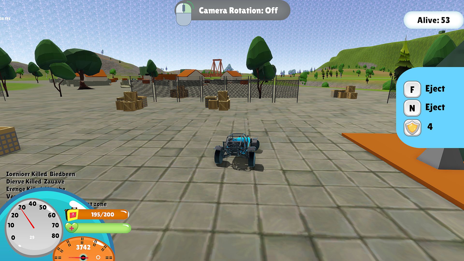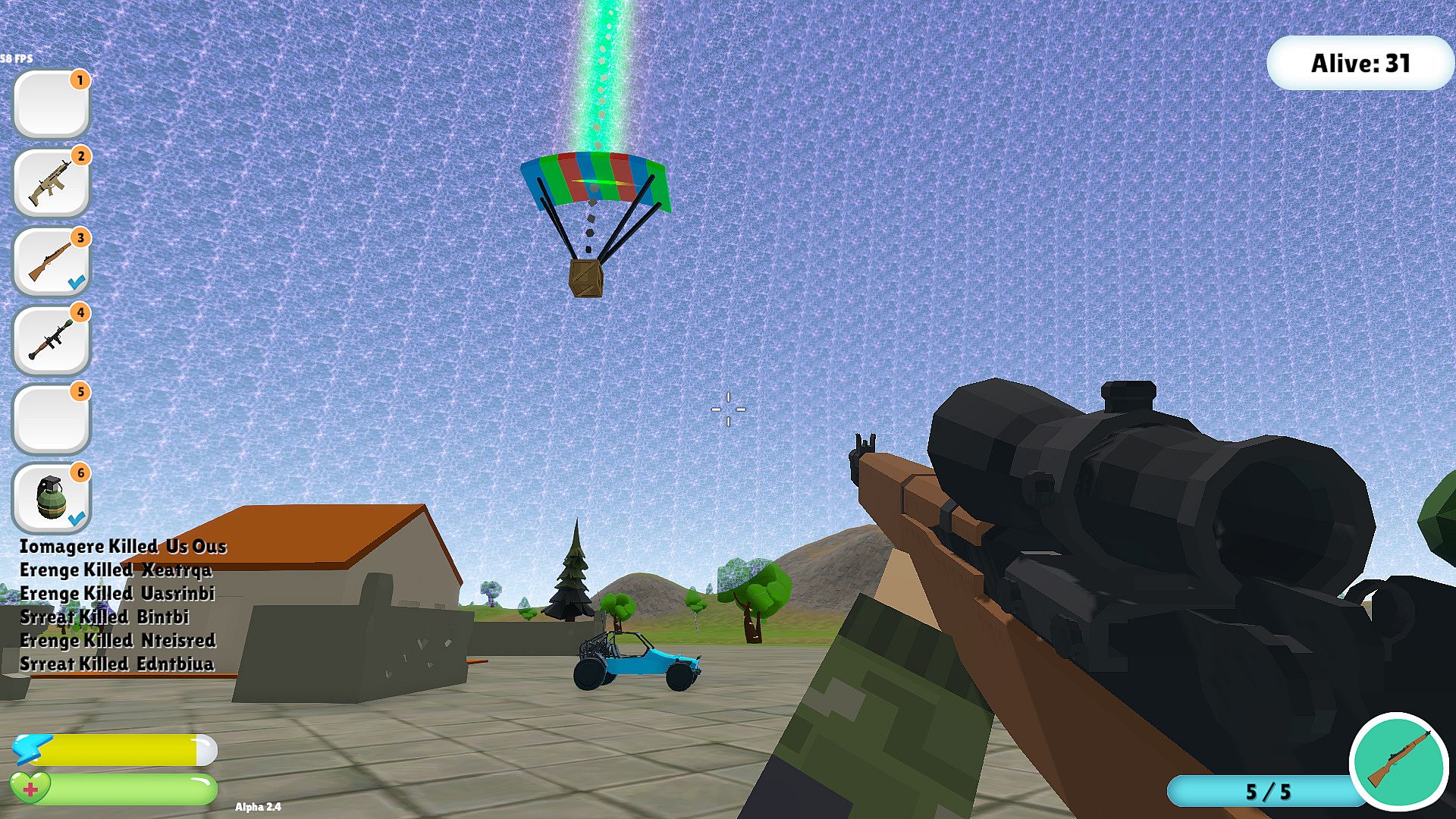 A Battle Royal Sandbox Single player, land on large island with many NPC's and battle it out in ever decreasing battle area, keep fighting till you die or kill everyone else.