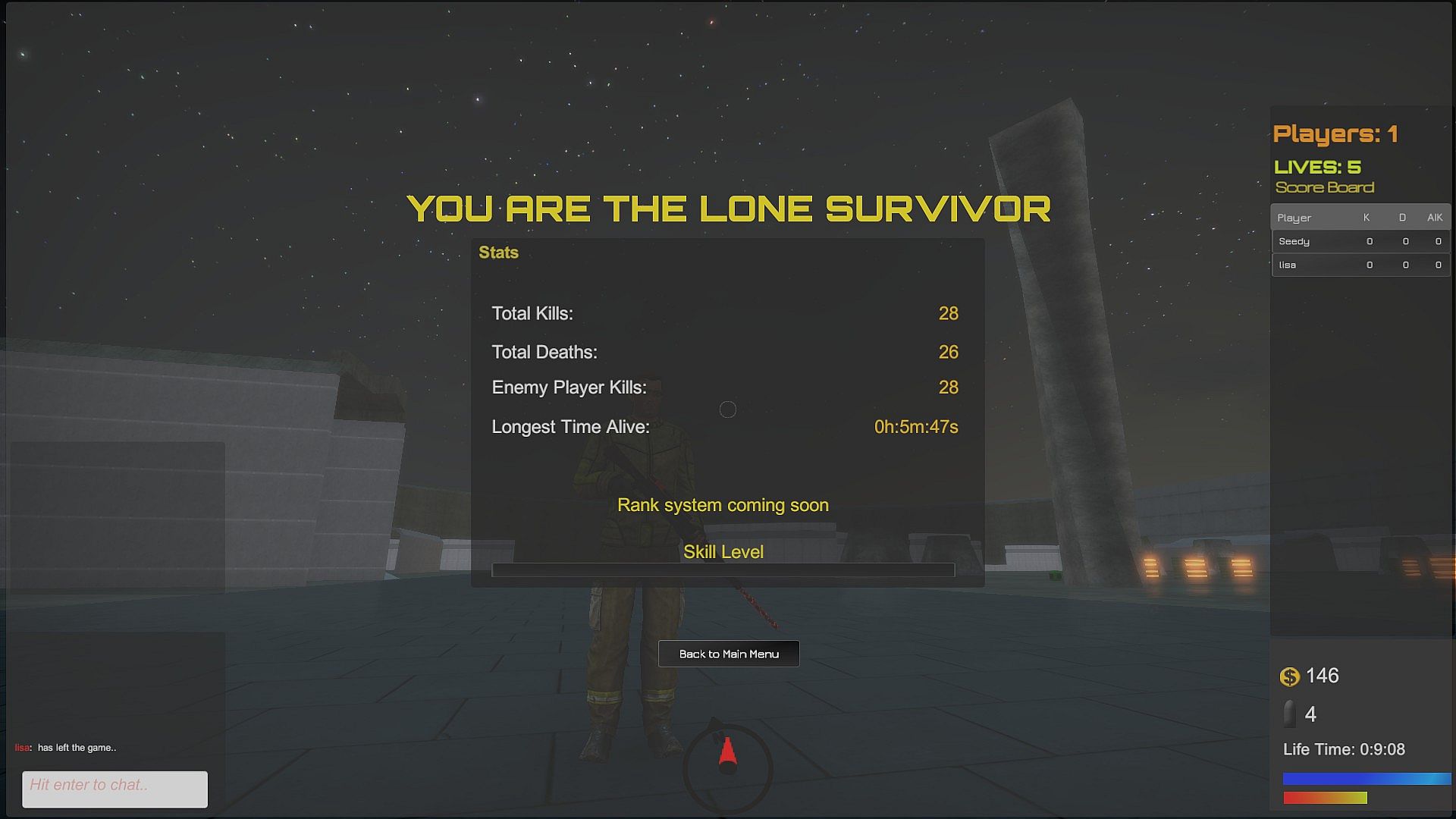 Dominez les arènes dans ce survival shooter à la troisième personne en affrontant des adversaires IA et humains. Grimpez les échelons de compétence, du débutant à l'Expert, grâce à des défis solo qui repoussent vos limites et vous propulsent vers les classements Steam. Les combats intenses contre l'IA maintiennent un rythme effréné tandis que vous luttez pour la domination.