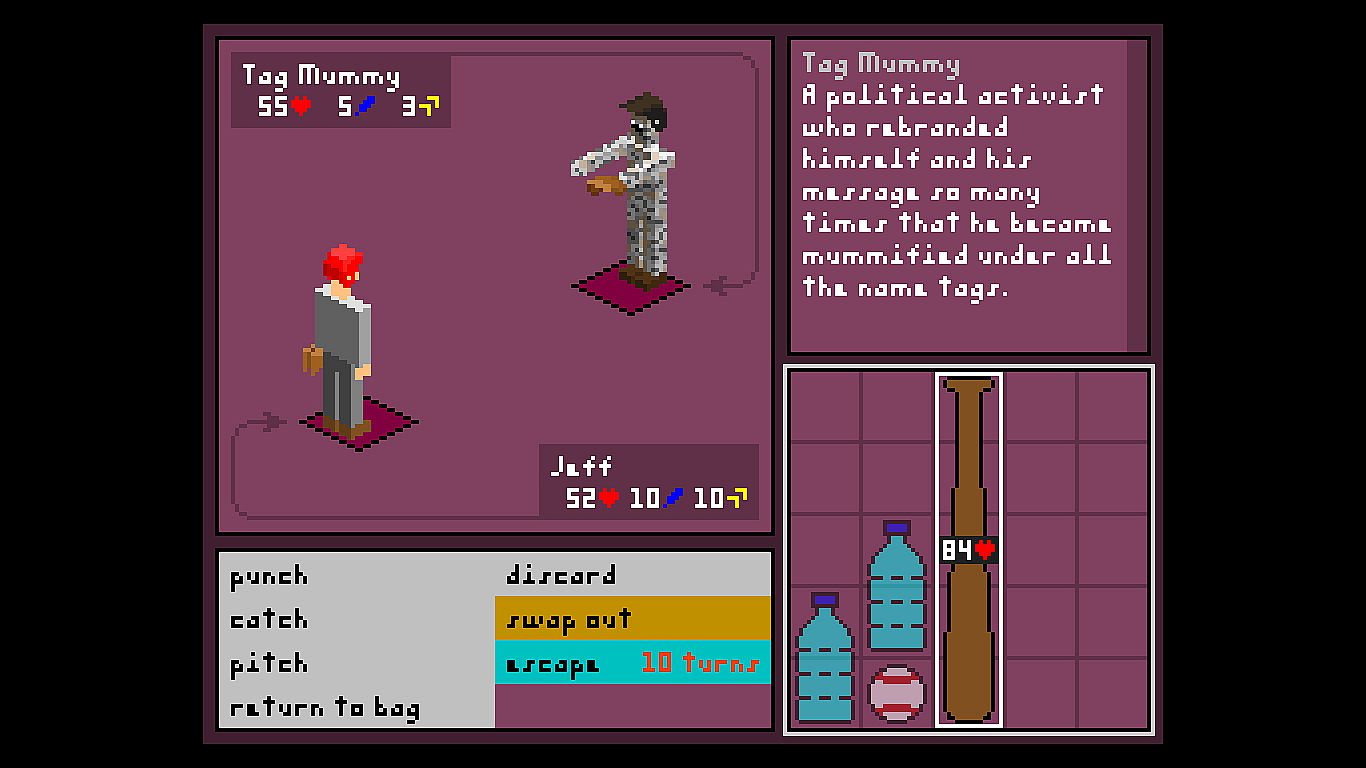 Jeff Bout fails tryouts for the Ne'er Winners, the oldest baseball team in Sea Paddle, but grinds through practice to join them and stop a donkey politician from Assachusetts named Lord Democrat from disqualifying the squad. Soon, his coach falls mysteriously unconscious, prompting Jeff and two friends to haul him to safety while advancing their quest. This action RPG adventure mixes pixelated platforming exploration with swap-out RPG battles on PC. Players wield baseball gear inside and outside combat, switching characters mid-fight-Teddy grabs standard baseballs from the prior turn, while Laura shrugs off persuasion and heals by toppling foes. Tackle multiple game genres and roles throughout the journey, then unlock a second mode via a story-hidden code. Fans of swap-out RPGs and sports-infused platformers get a quirky blend of strategy and athletic action.