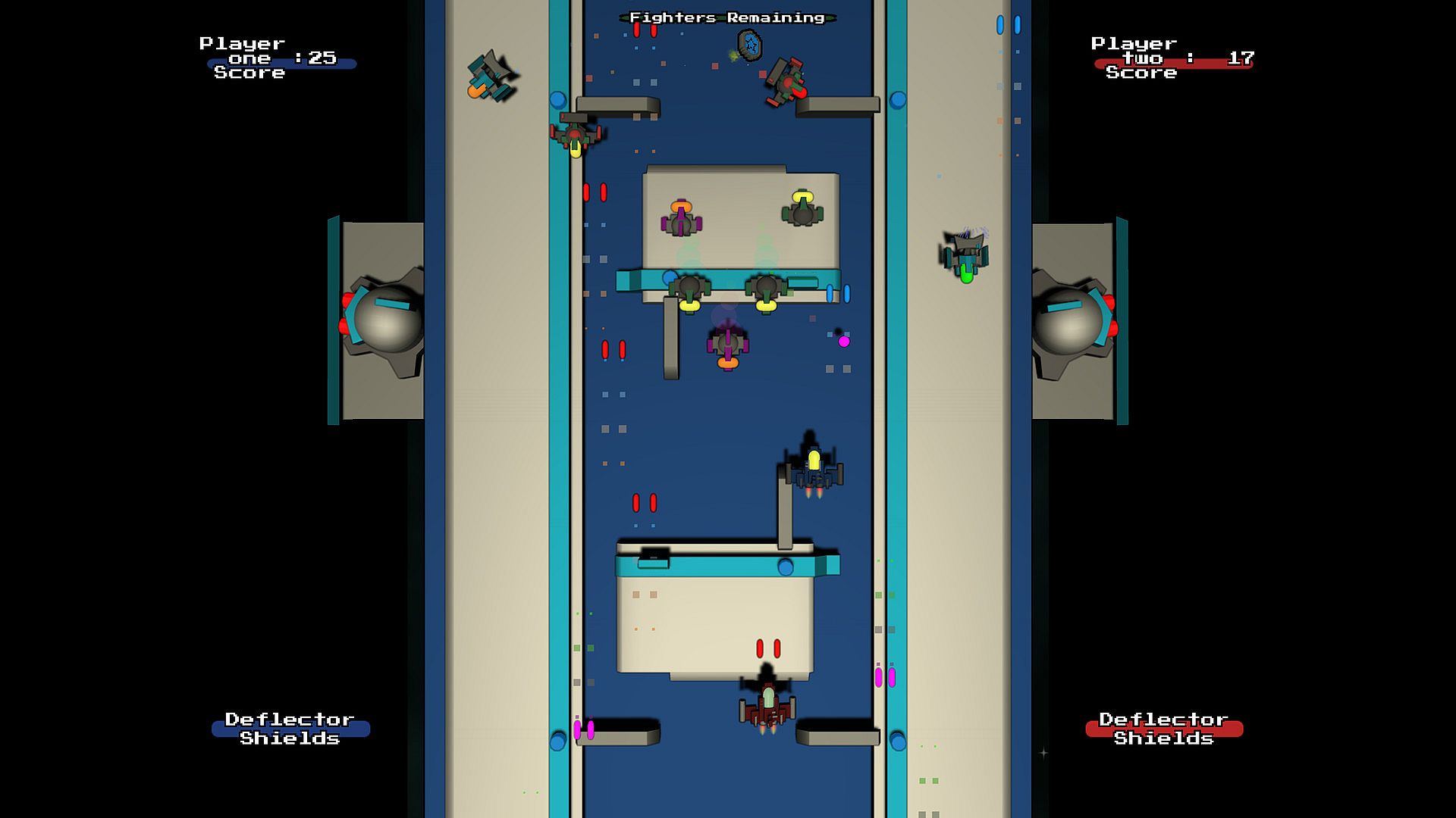 Power up your fighters' destructive and defensive capabilities by collecting one of four power up drops. Including Armor Up, Orbitals, Sidewinders and more...