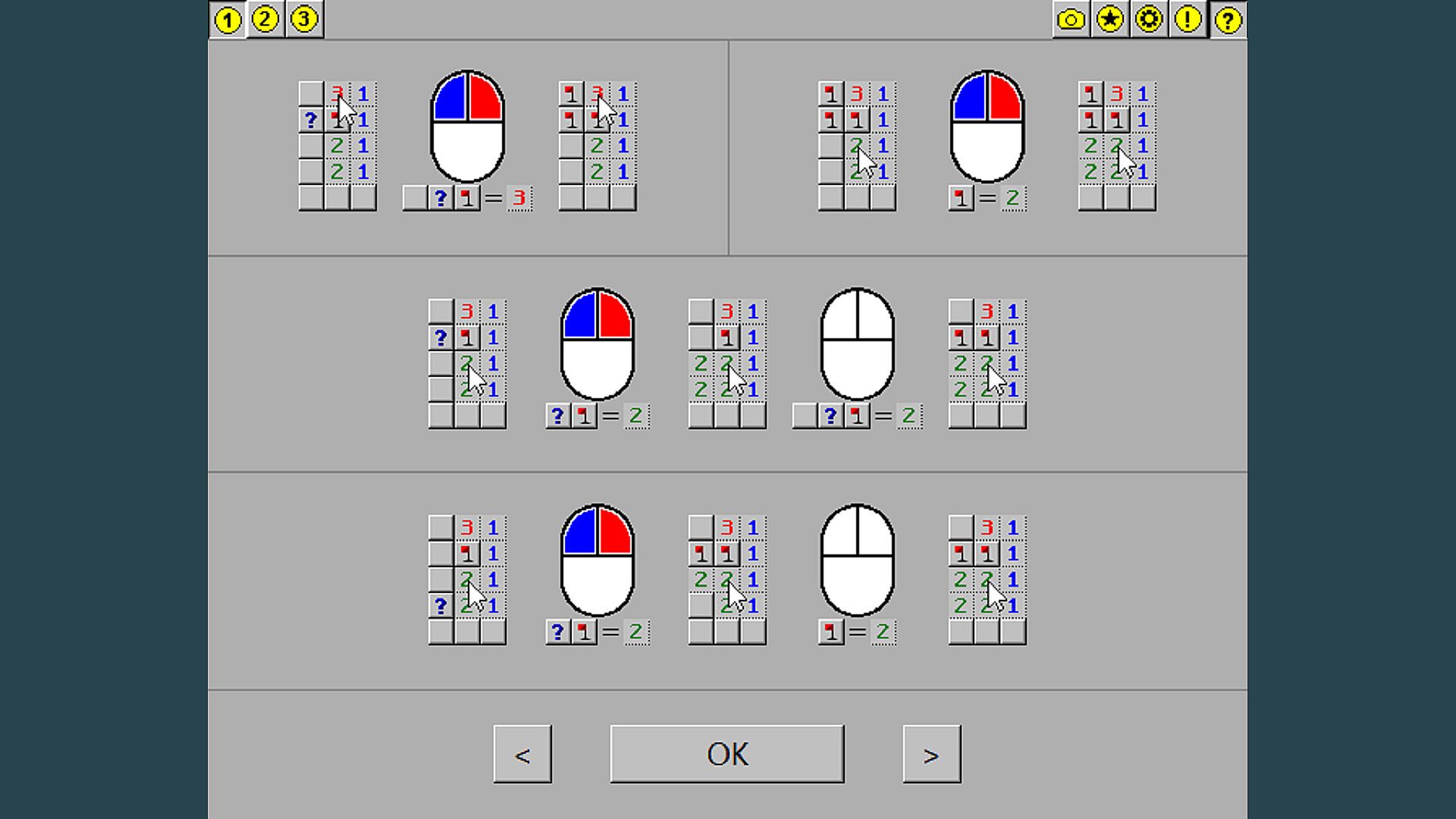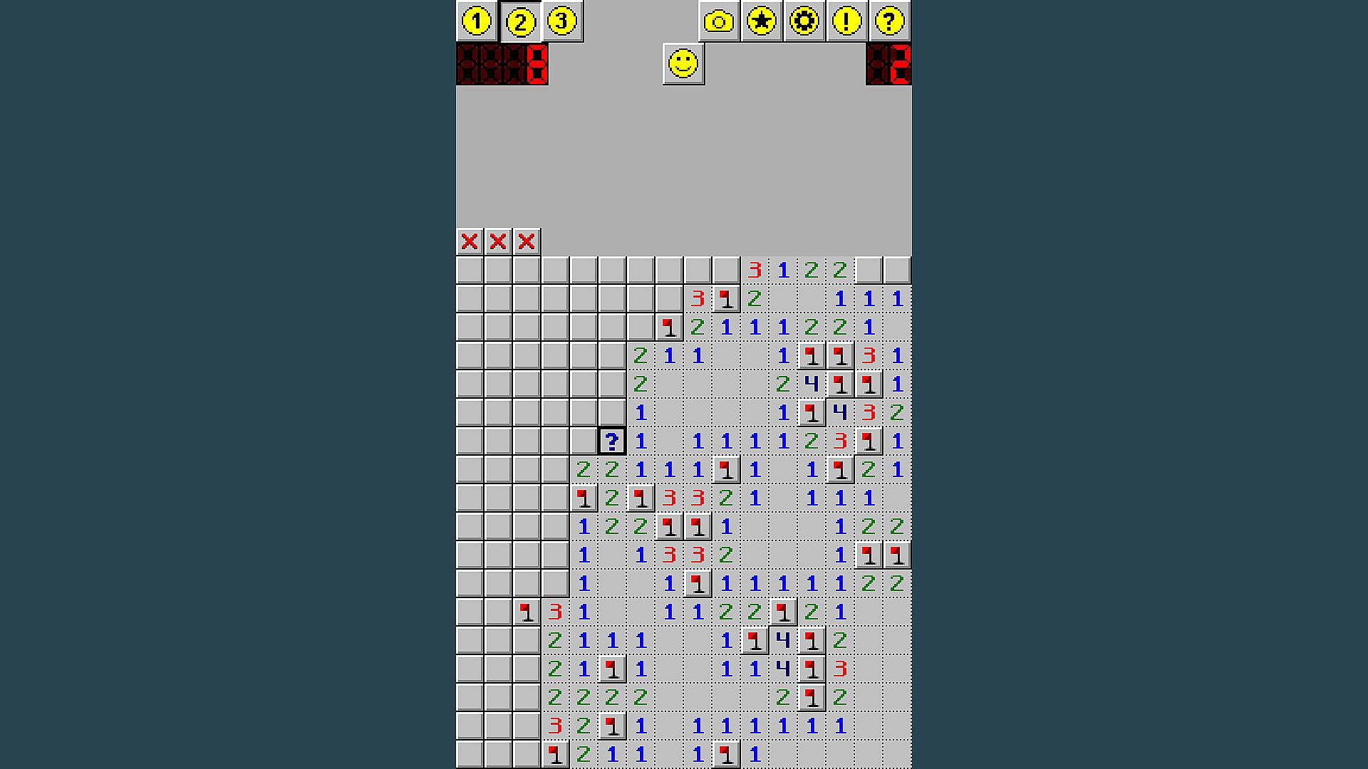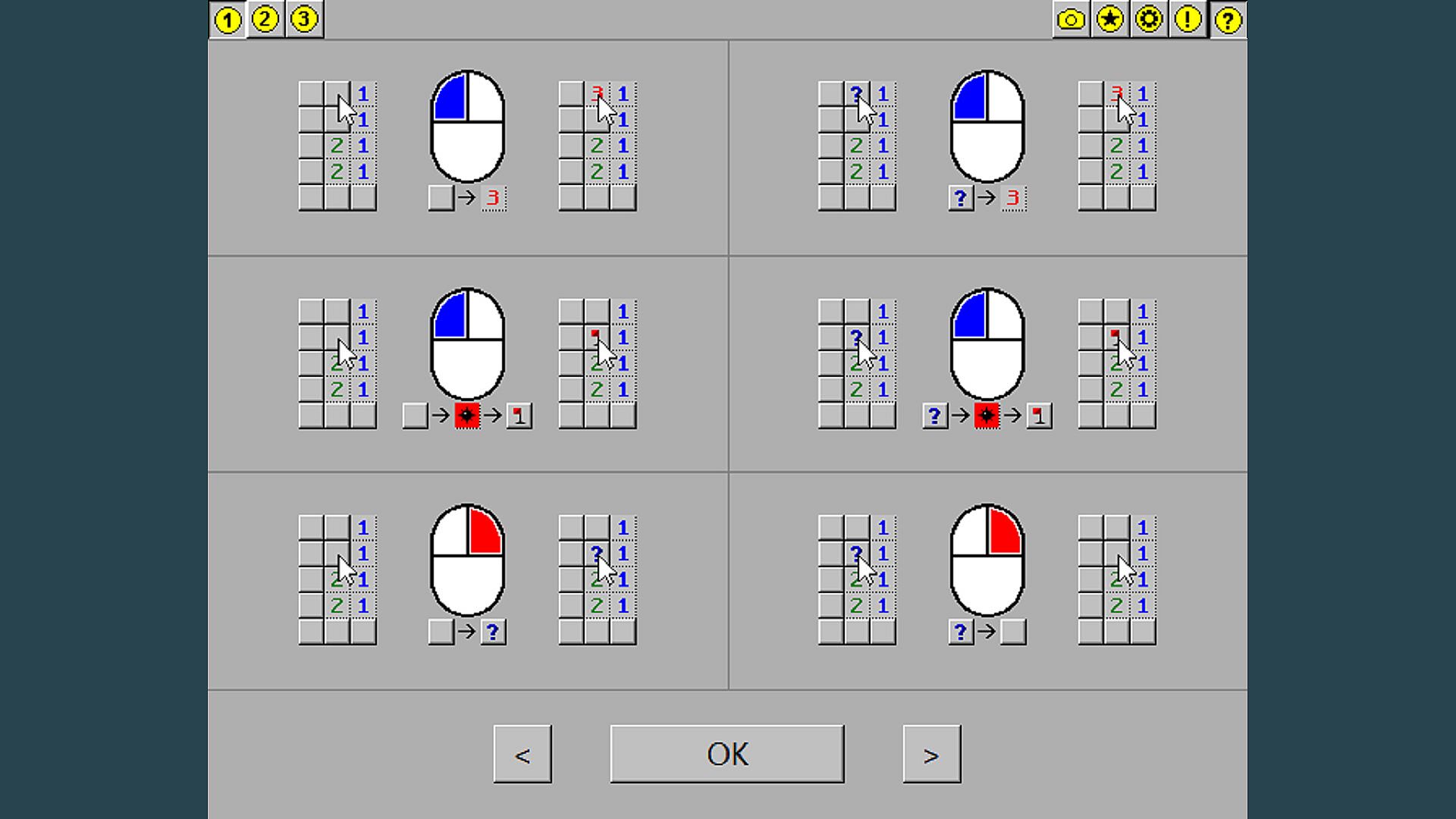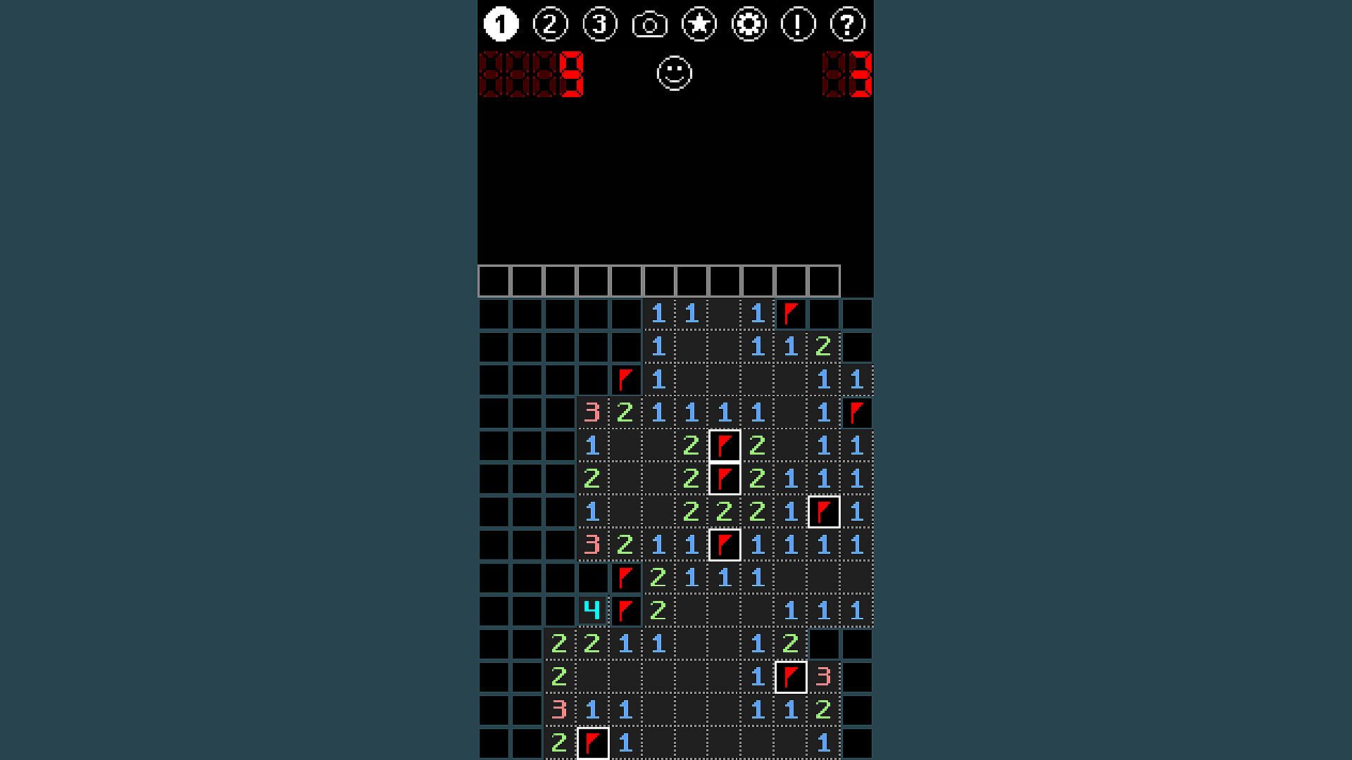 W przeciwieństwie do tradycyjnego Minesweepera, kliknięcie prawym przyciskiem myszy oznacza blok znakiem zapytania zamiast flagi. Blok jest oznaczany jako flaga tylko wtedy, gdy jest pewność, że to mina, np. przez kliknięcie lewym przyciskiem myszy na minie.