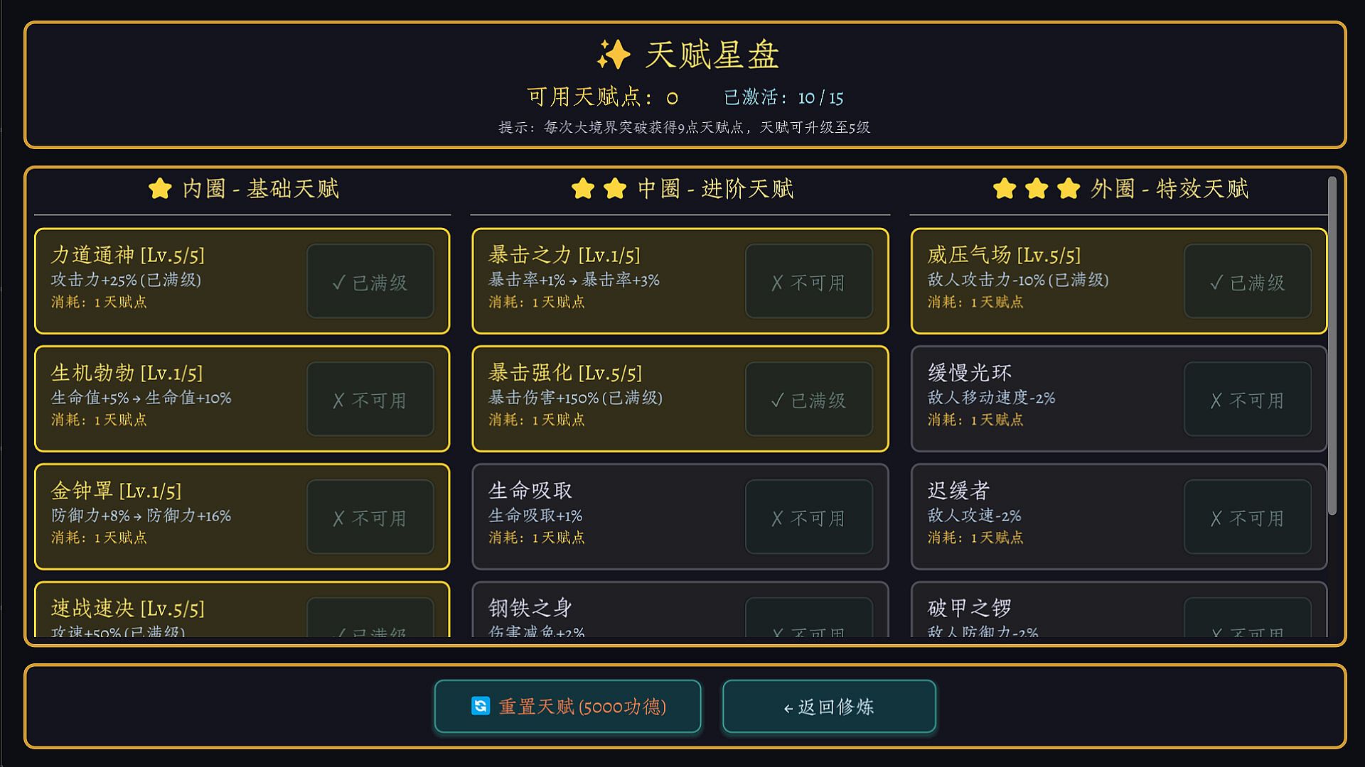 • Upon reaching the Sage realm, you can unlock Rebirth: reset part of your progress in exchange for Rebirth Points and permanent bonuses, surpass your previous limits, and advance to a higher level of cultivation.