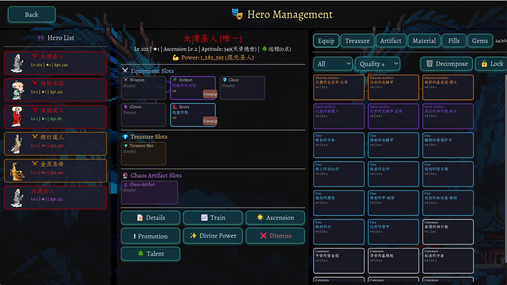 • Multi-layer progression system: realms, techniques, talents, divine arts, treasures, equipment affixes, and gems all contribute to your power.