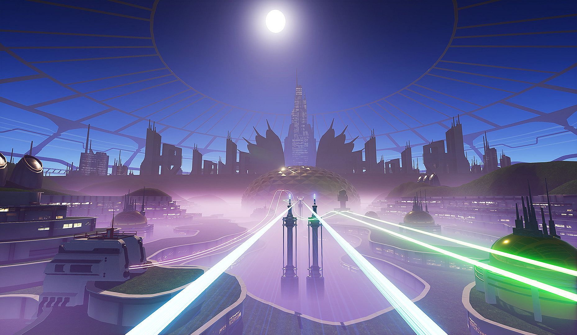 • Traveling through diverse and feature-rich futuristic locations at high speeds, within a dynamic environment.