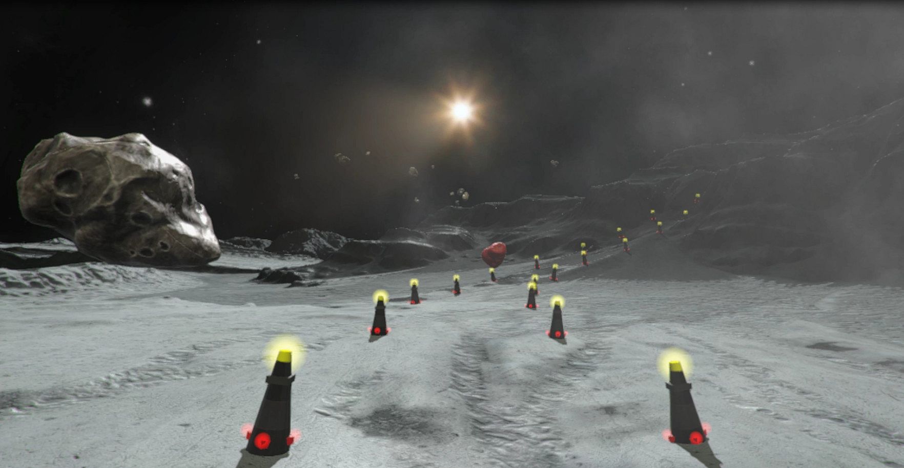 Survolez la lune avec des réacteurs booster fixés à vos contrôleurs dans cette aventure de course action en room-scale. Parcourez des circuits pour planter des drapeaux et lancer des fusées sur des astéroïdes. Les multiples types de missions maintiennent le dynamisme, des quatre circuits et deux chasses aux astéroïdes aux deux vols forcés et au vol libre. Une musique spatiale ambient instaure une ambiance méditative lors de l'exploration de powerups secrets qui altèrent la physique et déclenchent des raves lunaires. Les joueurs compétitifs se mesurent aux temps locaux sur les circuits pour débloquer des améliorations de vol. Le locomotion boosting ravira les fans de maniabilité en environnements spatiaux.