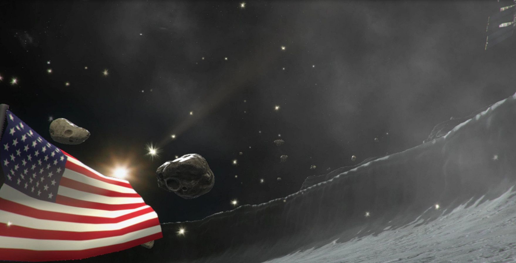 In One Giant Leap you are equipped with a pair of booster jets for controllers! Fly across the moon, navigating courses to plant the flag and destroying asteroids with rockets.