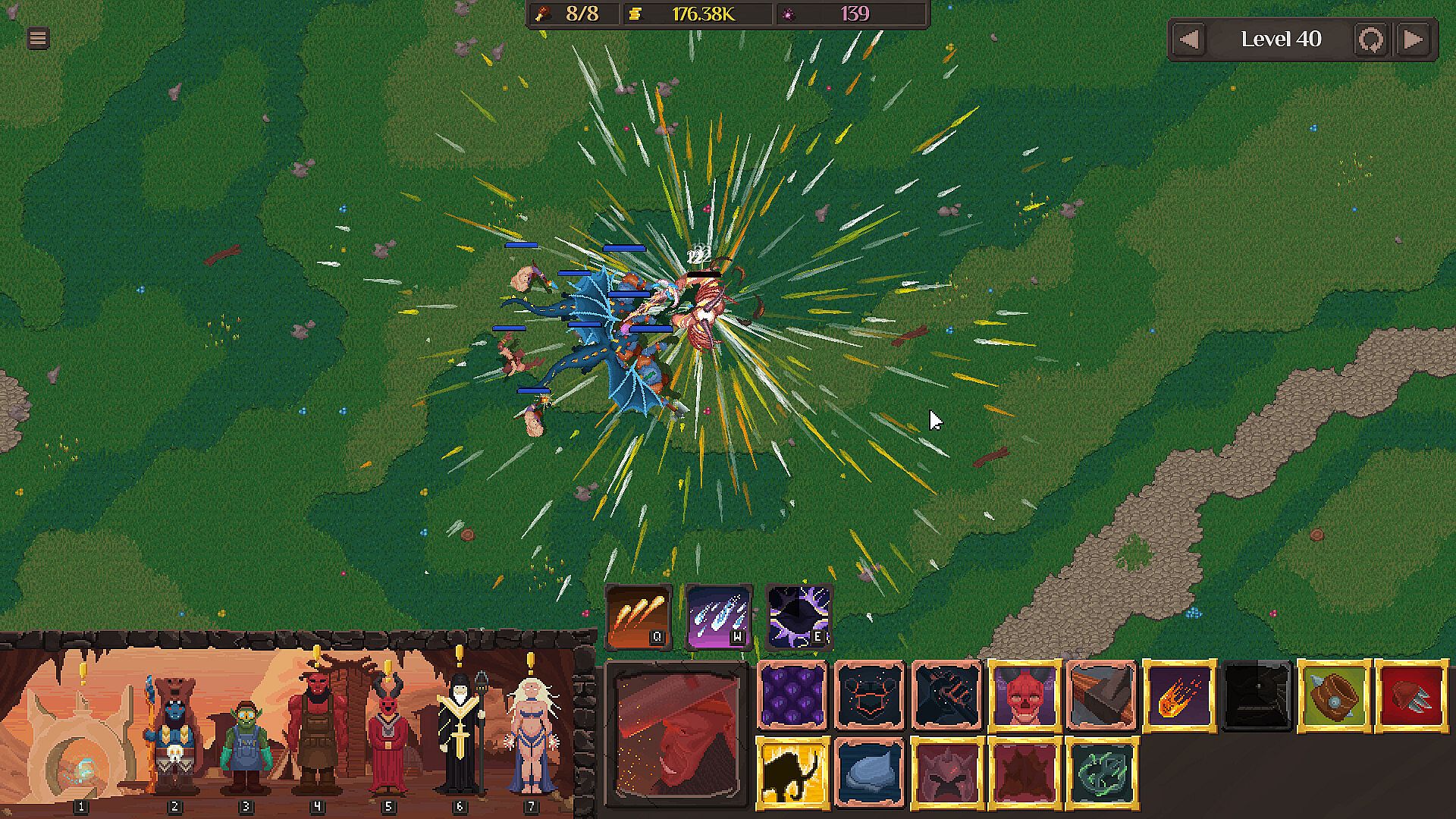 At some point your army stops being enough. That's when you ascend (Dark Rebirth). Reset your run, keep permanent bonuses (for damage, health, gold, etc.) and unlock new units and challenges that weren't available before. The early game opens up as your power grows, and the later milestones keep pushing you further. Every Dark Rebirth makes you stronger and opens up new goals.