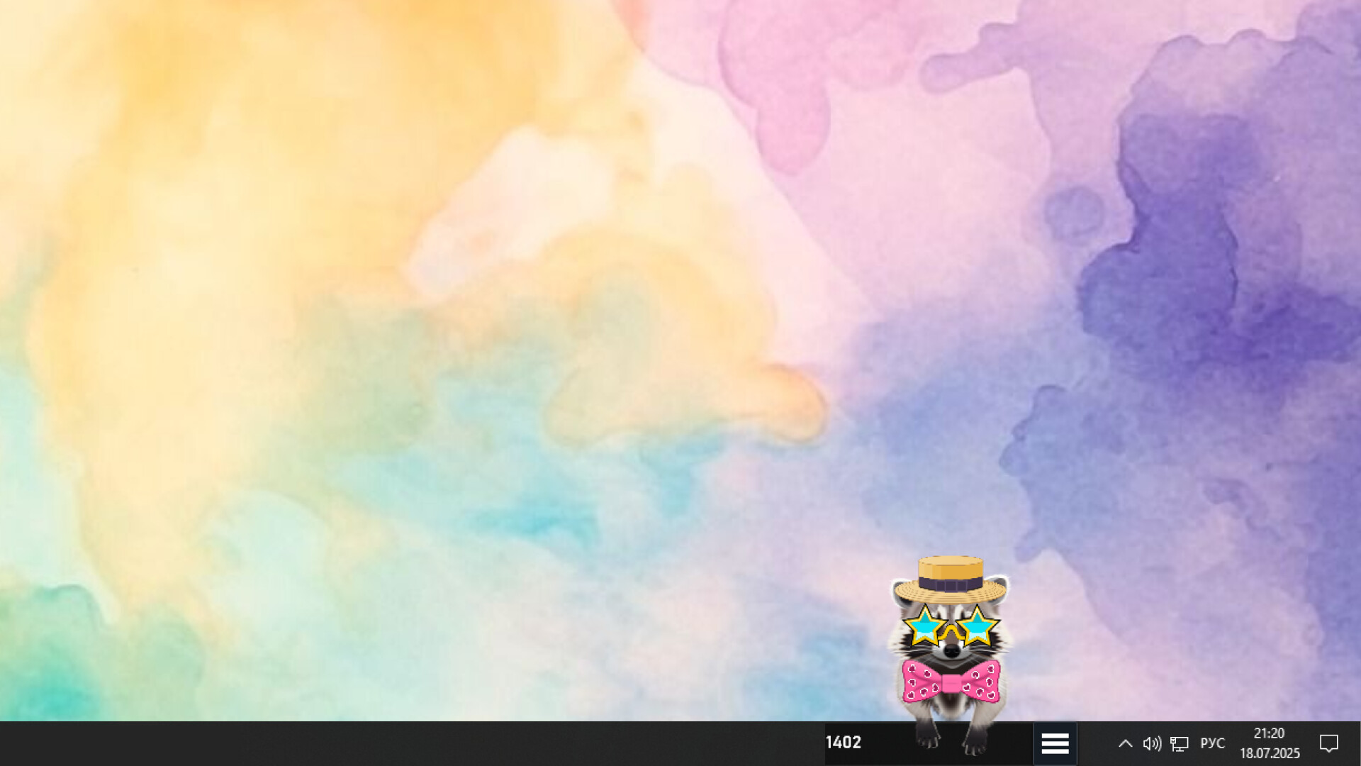 Every time you press a key, the curious striped raccoon will diligently rub your taskbar with his paws, as if rinsing a new find in water.