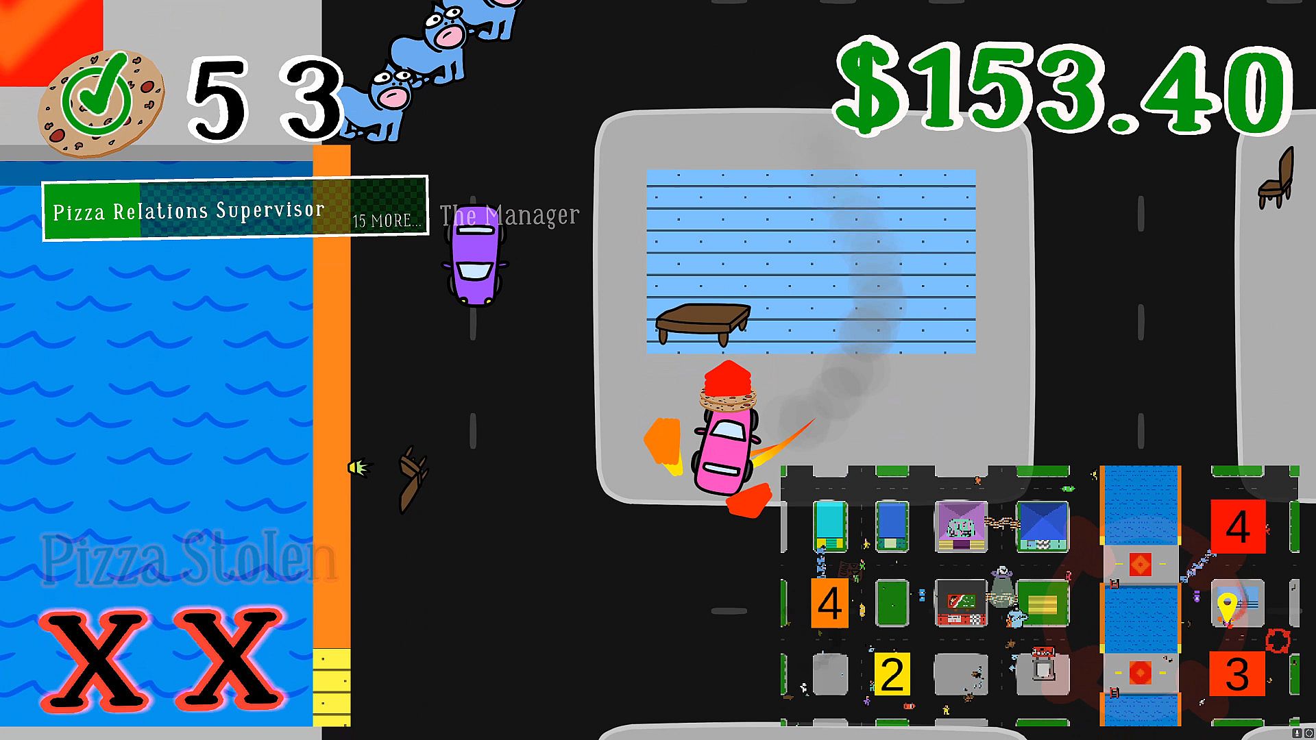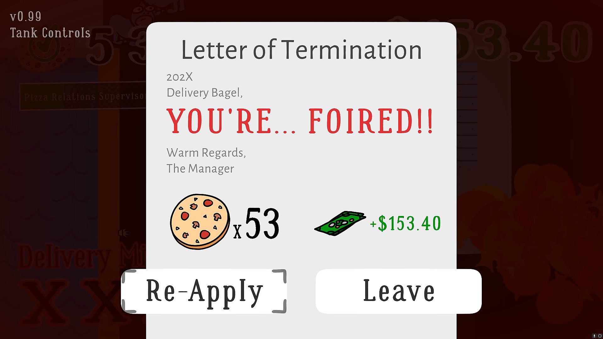 Work the most insane pizza delivery job of all time, and try to make as much money as possible before you get fired!
