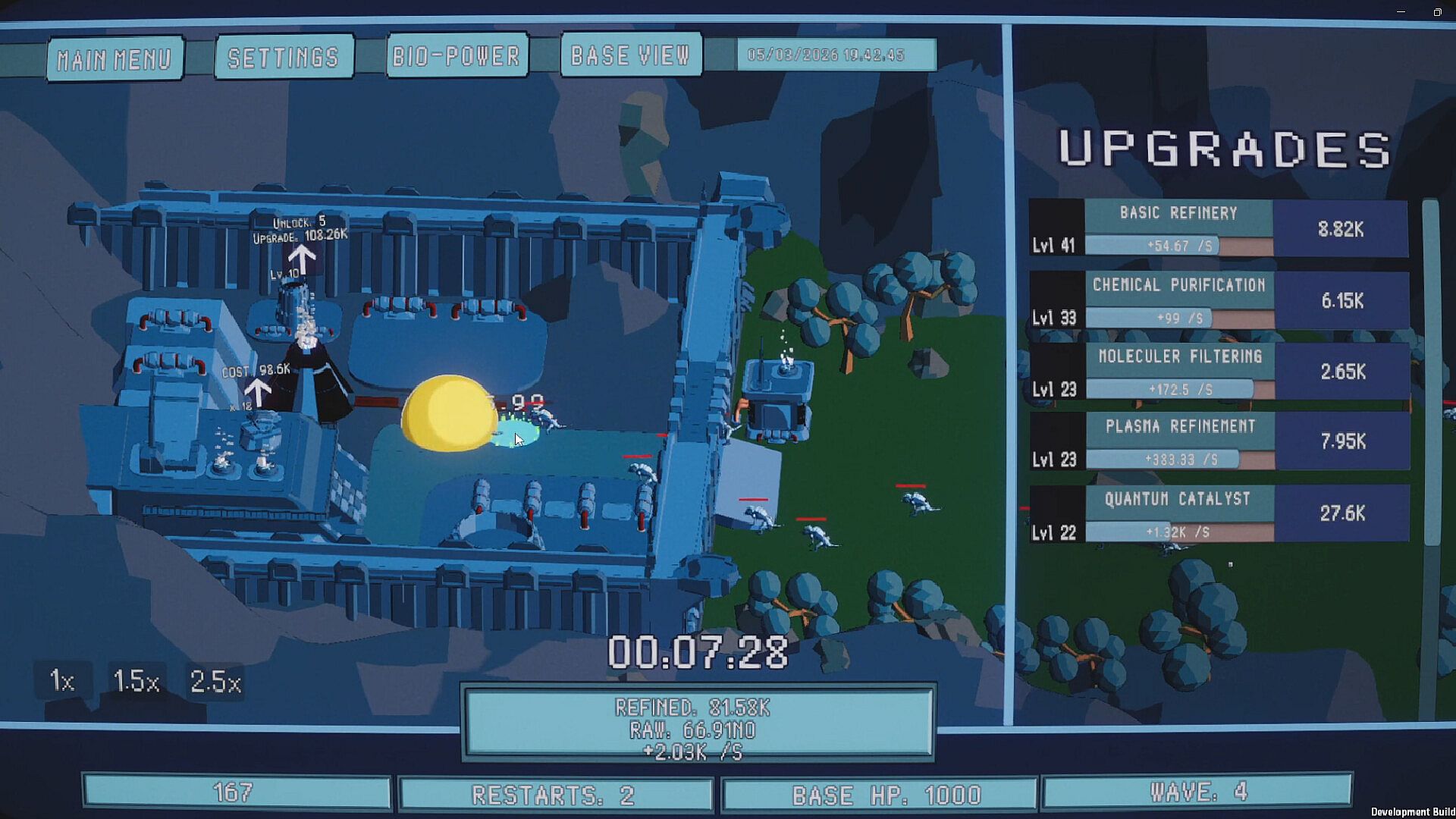 Planetfall: Endless Wave is an idle incremental base-defence game inspired by classic RTS visuals and the escalating chaos of games like Risk of Rain 2. Each wave grows stronger, faster, and deadlier — and survival depends entirely on how you evolve your base.