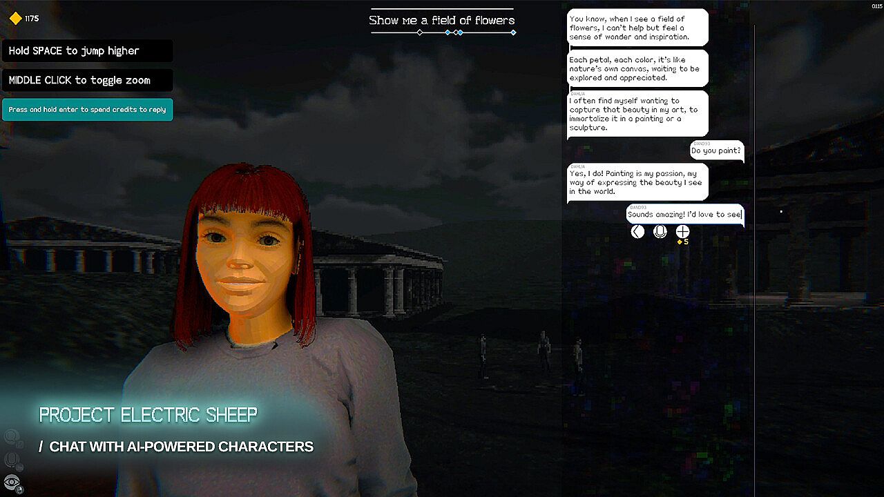 Project Electric Sheep invites you to discover dream worlds populated with dozens of free-roaming conversational characters, all ready to talk about your dream. These AI-powered characters talk to you and also to each other! Join group conversations, discuss, laugh and learn more about your newly acquired dream friends.