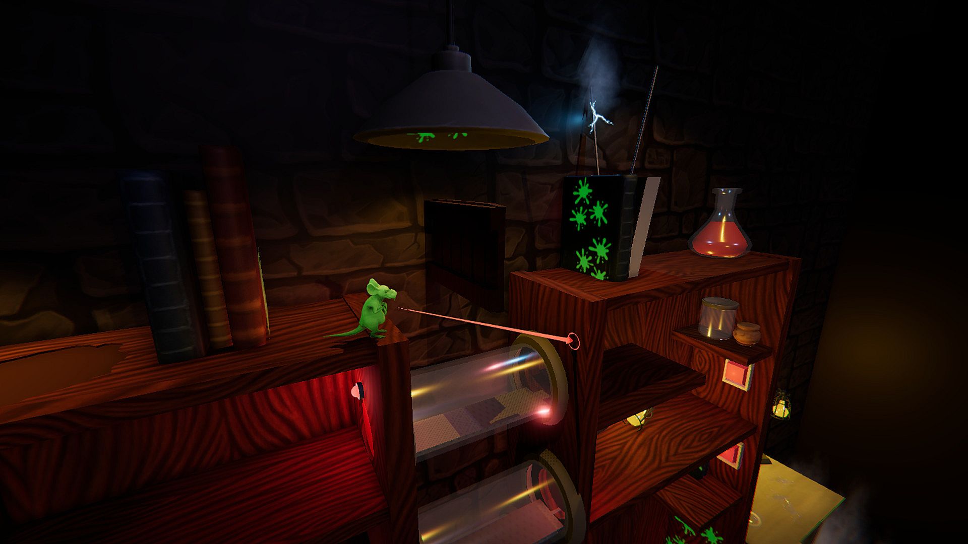 Chris P. Ratt, un ancien sujet de test diabétique transformé par une dose massive de cannabidiol en super-rongeur aux pouvoirs gélatineux. Propulsez-vous à travers le labo, esquivez les matières dangereuses et glissez hors de ses recoins humides. Ce jeu indie casual propose un voyage solo atmosphérique conçu par des étudiants.