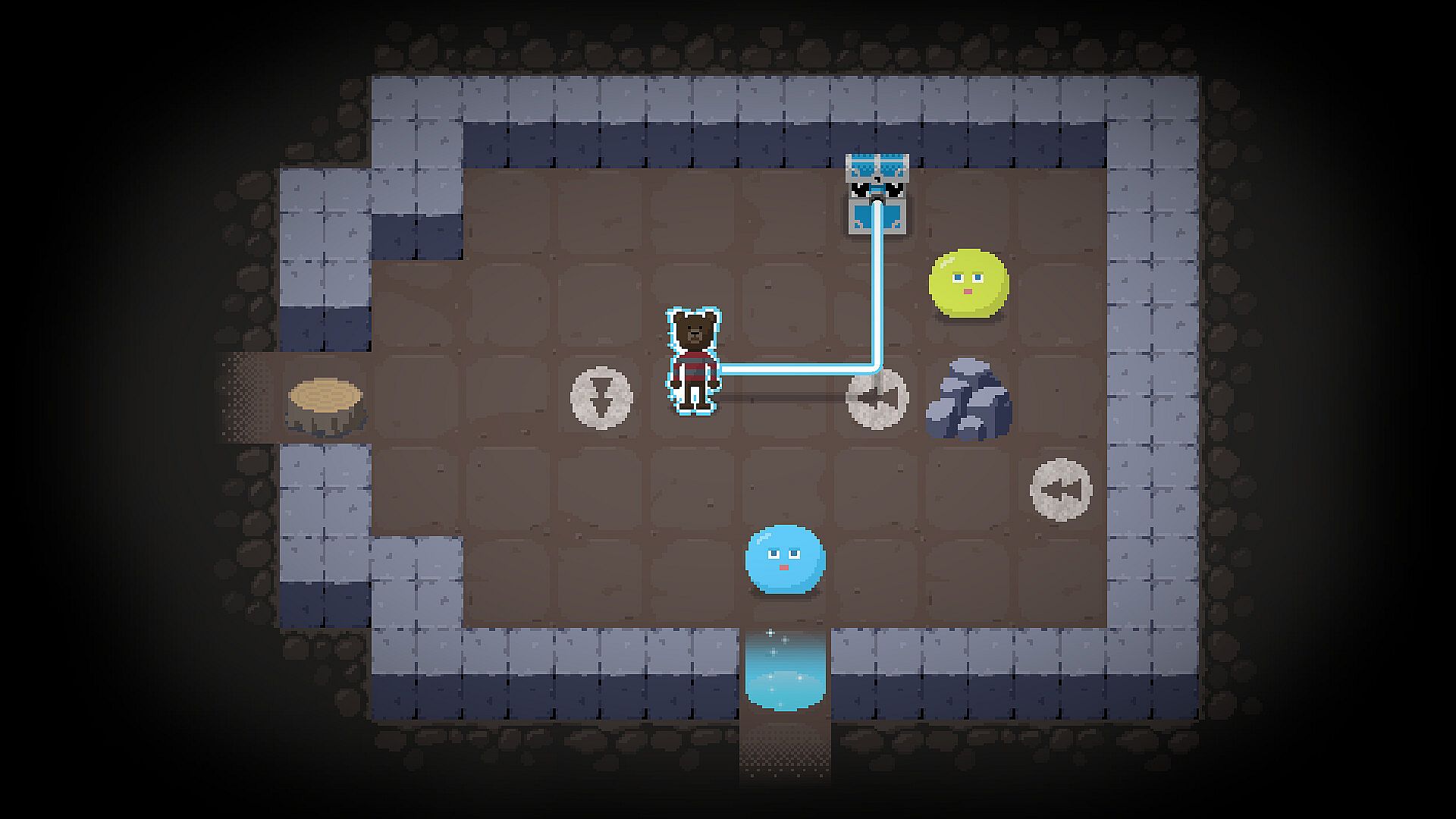 • Roll the blue slime into the goal to unlock the path to the next area.