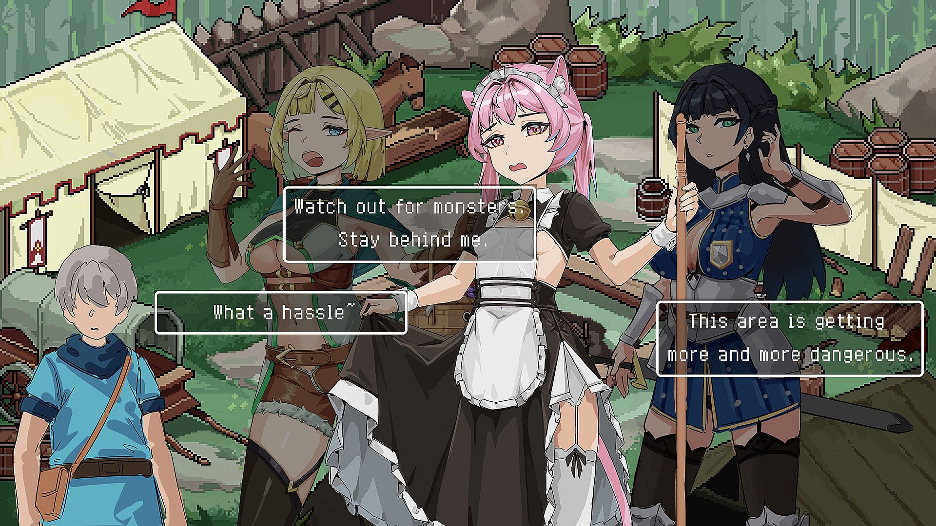 The game features a day-based progression system and multiple character questlines, allowing players to experience life in a medieval town, meet heroines from distant lands, and enjoy H-scenes anytime, anywhere!