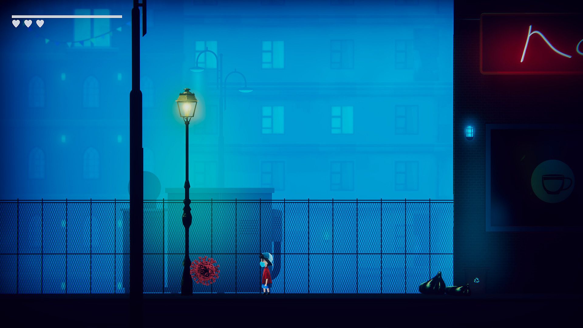 STAY SAFE 2020 is a fun, light-hearted platformer that tells a brief story of a young person’s quest to help an old woman in need. As you risk your life to break the lockdown, you’ll find a world in disarray, filled with deadly viruses. Along the way, you’ll meet a cast of characters who can guide you toward your goal, if you can accomplish a number of tasks that is.