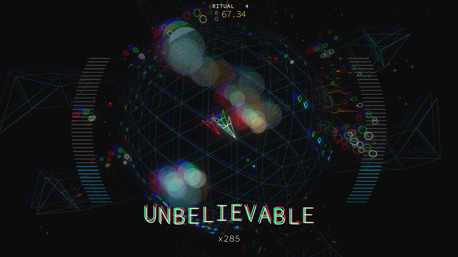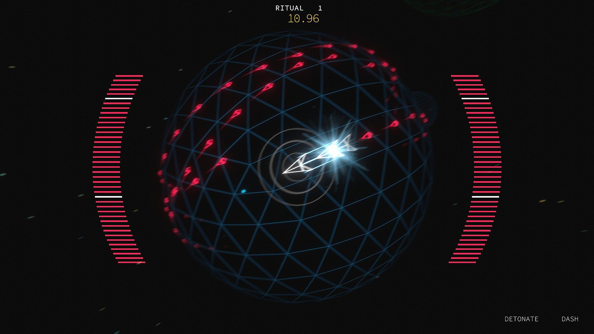 Conduct your symphony of destruction. Dodge tantalising bullet patterns of your own design. Survive for long enough to release a primordial blast of dark energy, detonating your projectiles in gloriously satisfying chain reactions. Perfect your strategy to squeeze every precious second out of each run.