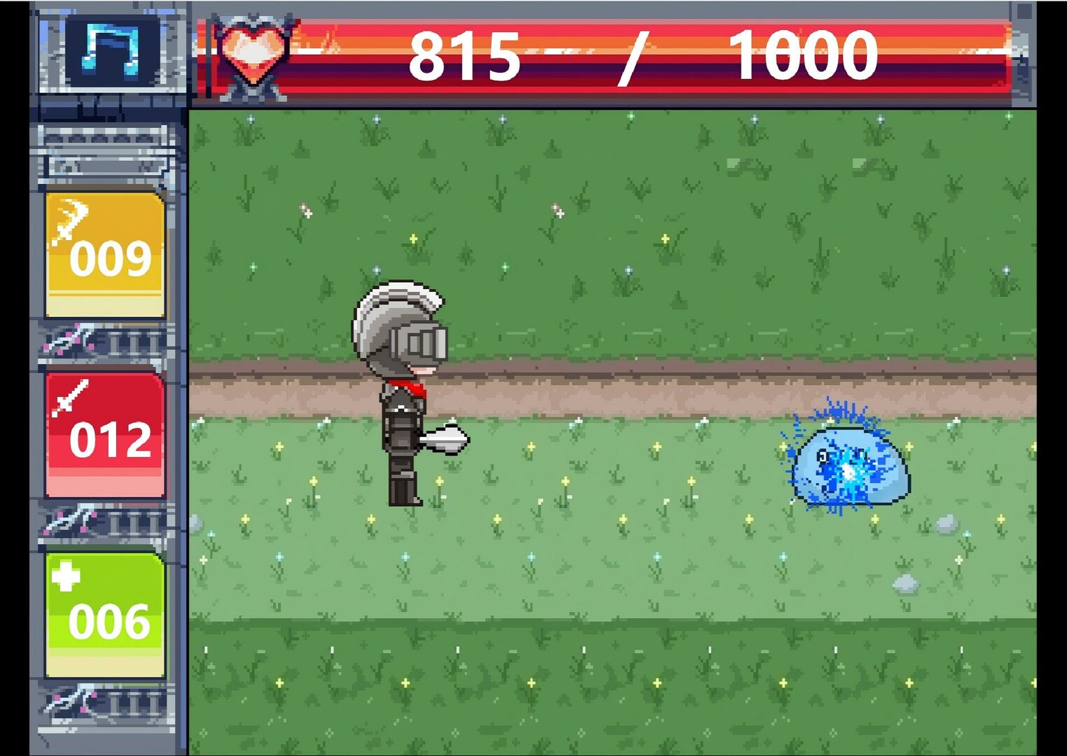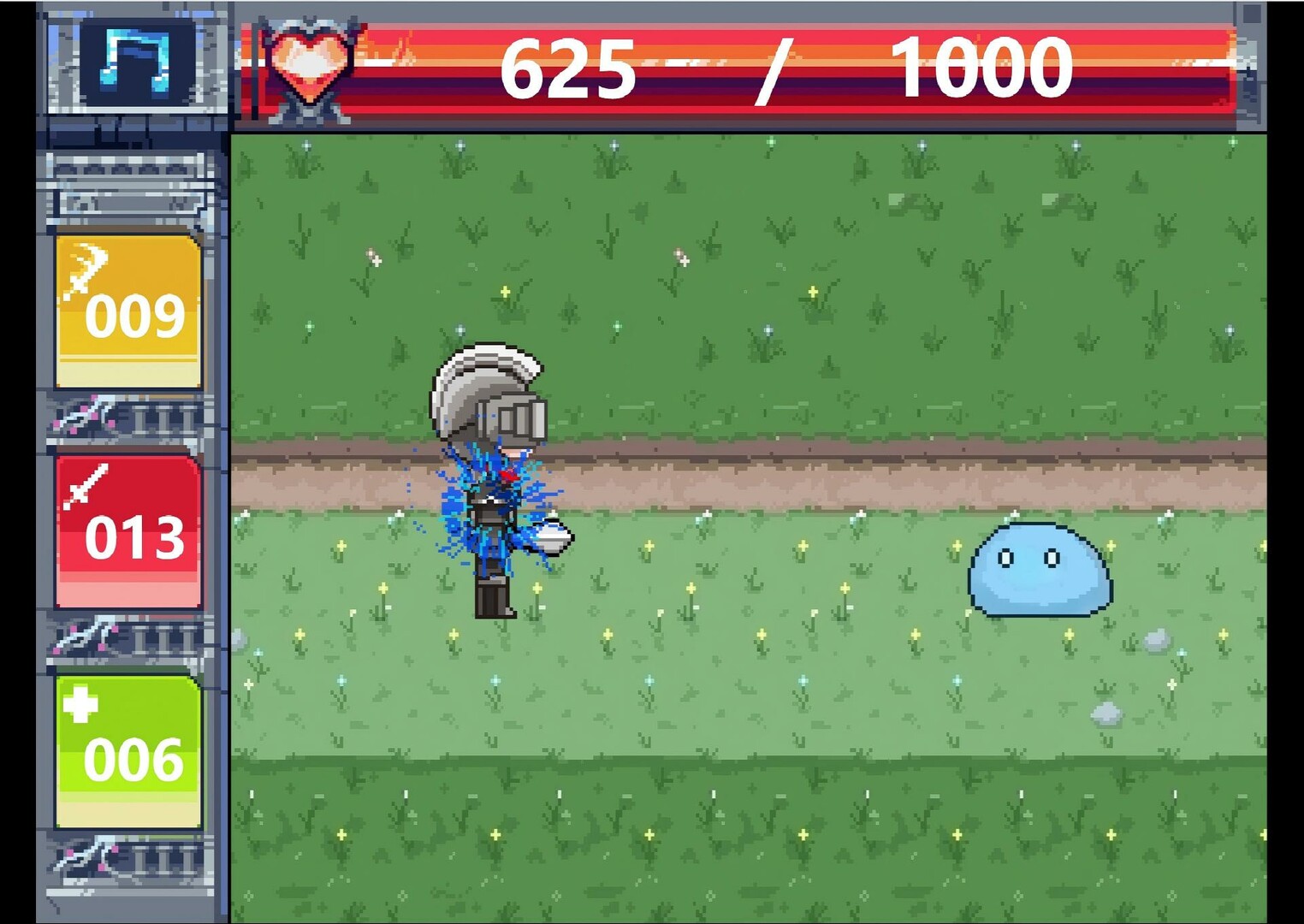 Finding and defeating Slimes is the only goal of the warrior.