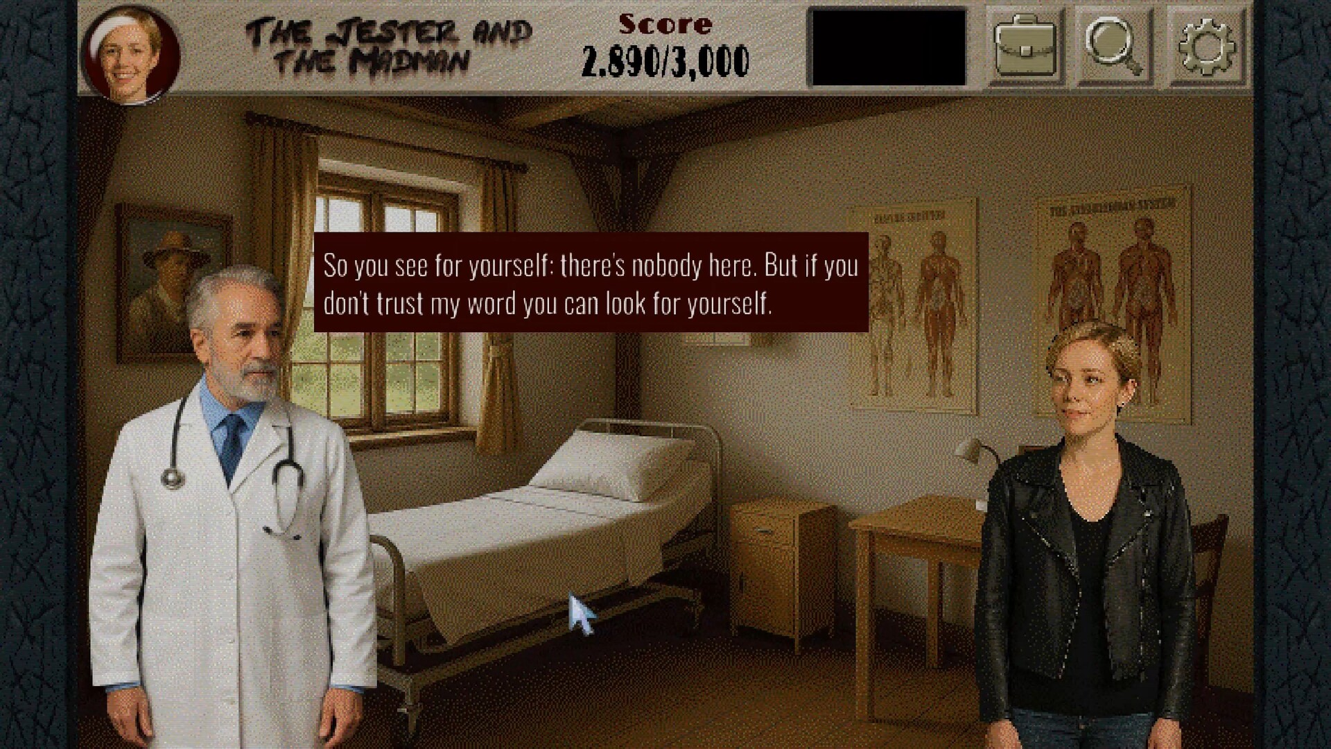 The Jester and the Madman is a story-rich point-and-click adventure game steeped in eerie atmosphere, over-the-top pulp fiction, and creeping cosmic dread. It’s a standalone sequel to Curse of the Old Gods, continuing the journey of former FBI agent Rick Moreton, now joined by a new protagonist, nurse Holly Bardot, as they uncover a vast conspiracy hidden beneath the surface of modern America.