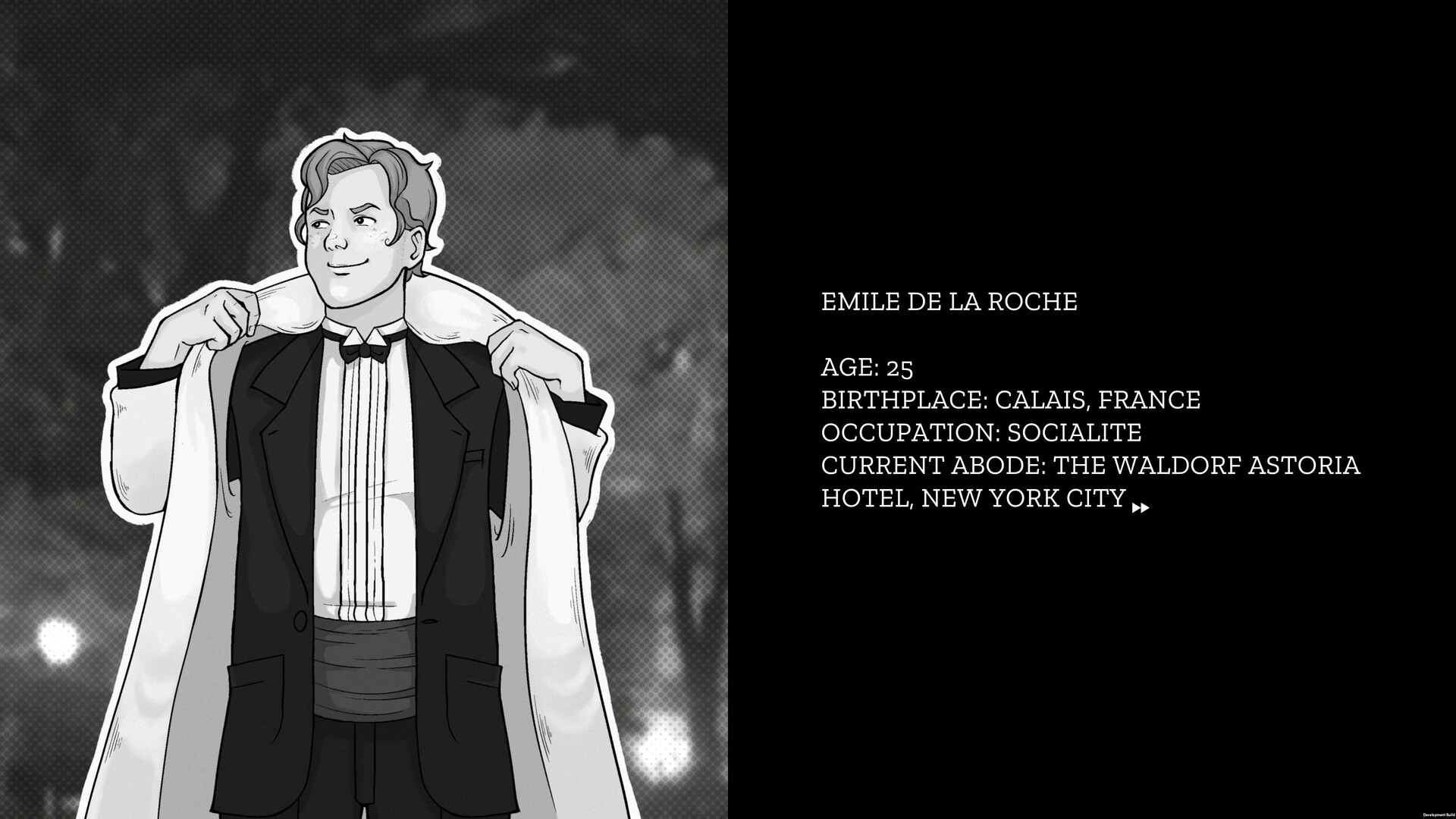 ...and Emile de la Roche is many things to many people.  A French aristocrat, leaving a slew of proposals unanswered in Calais.  A visiting bon vivant, sampling the finest of the Big Apple.  The 'Queen of France', a performer and fleeting star of the pansy scene.