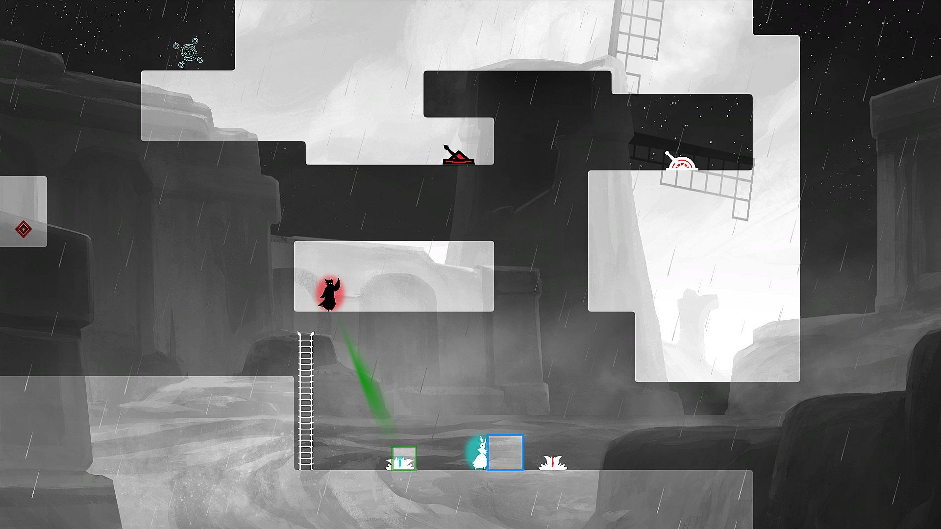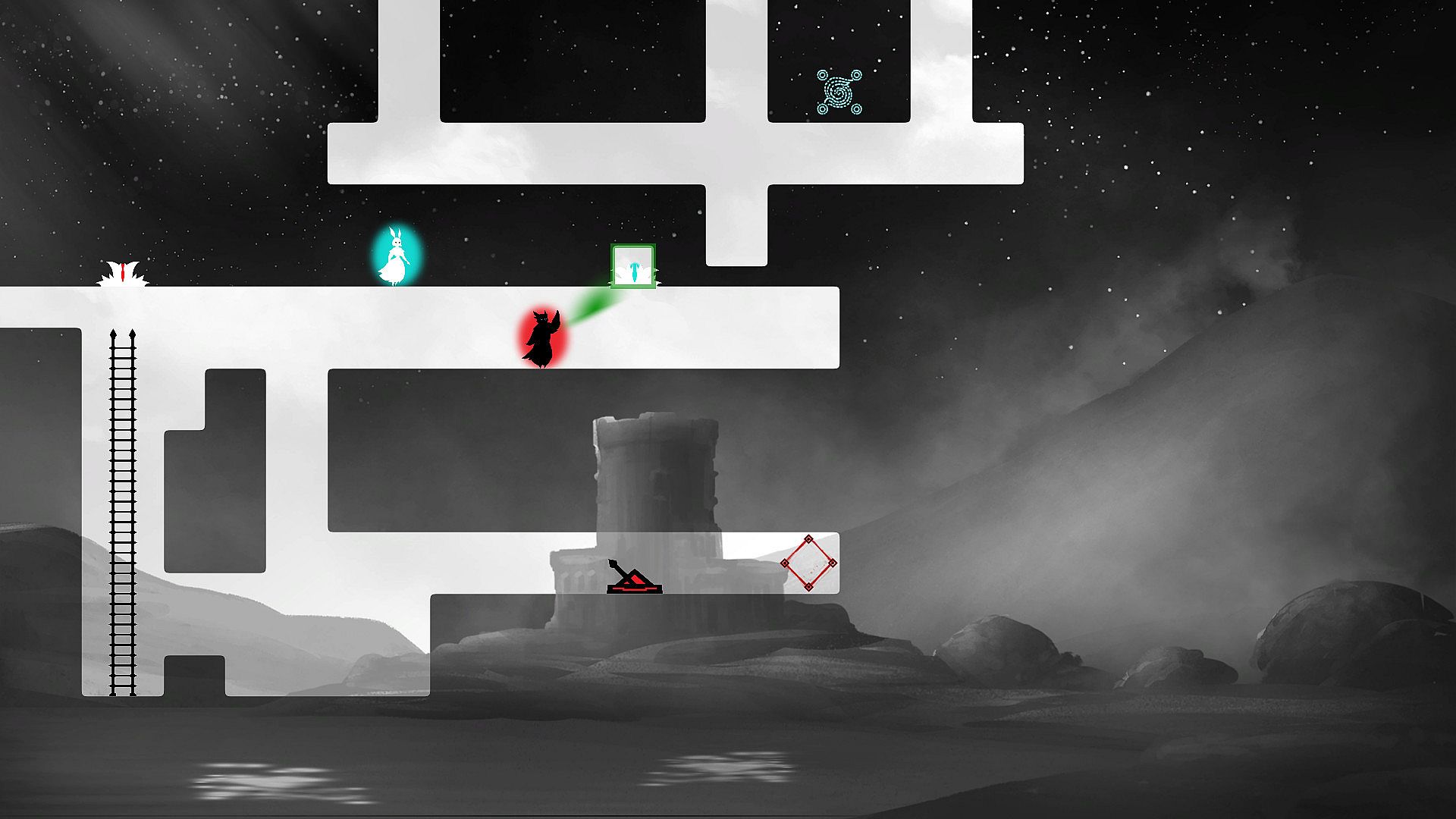 The Rabbit and The Owl is a cooperative puzzle-platformer where you (or you and a friend) journey through a fractured yet beautiful and hand-painted negative space landscape. The titular characters are confined to the realms of light and dark and are only able to progress through constant cooperation. Each puzzle requires you to explore and understand how you can best manipulate the environment and utilize the characters' special abilities to reach their respective goals.