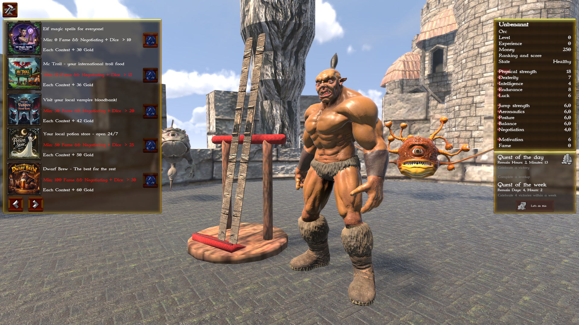 There are 10 different trainers to improve your skills, 10 different sponsors you can try to deal with, you can also take potions to help you for the next contest.