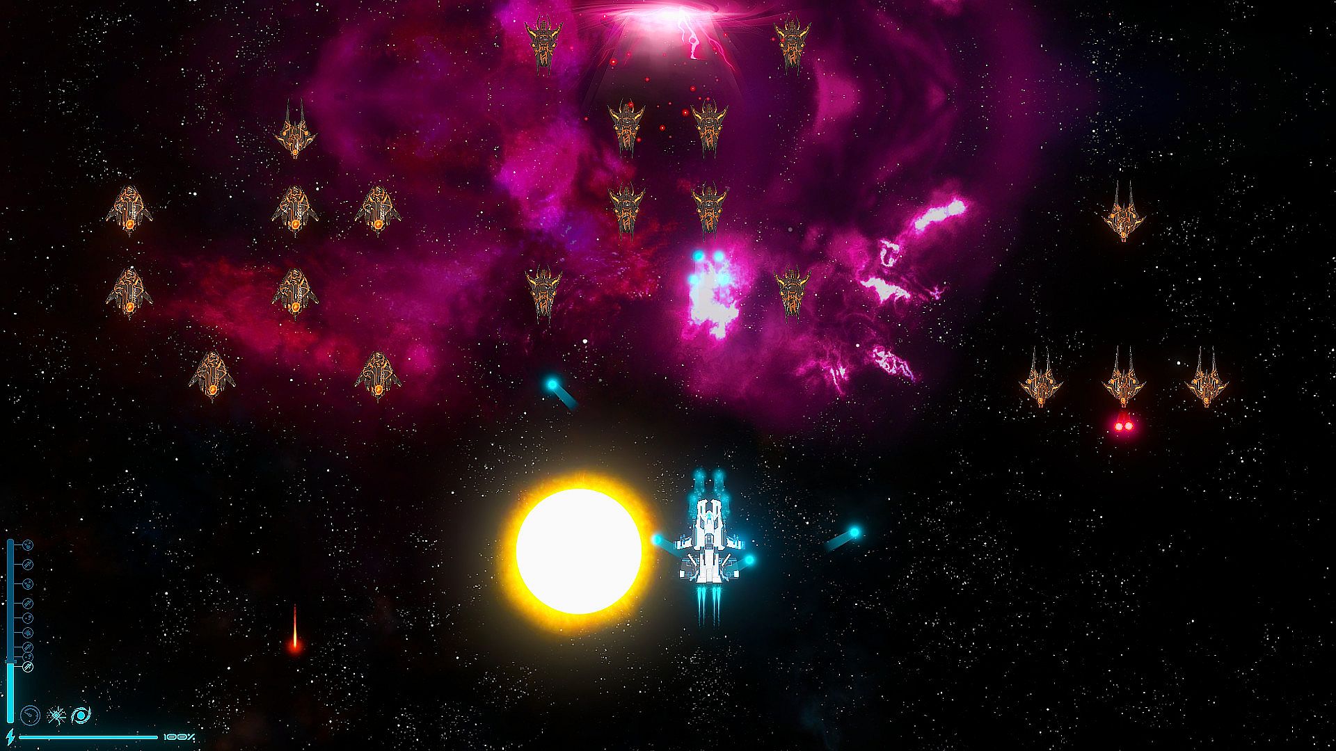 Waking up from stasis on a derelict Factory-class starship, you find yourself in a sector ravaged by life-purging machines. A quick scan reveals that your homeworld suffered the same fate, as did most of the galaxy. Your only hope is returning to the last remaining vestiges of humanity. However, a legion of merciless machines stands between you and your goal.