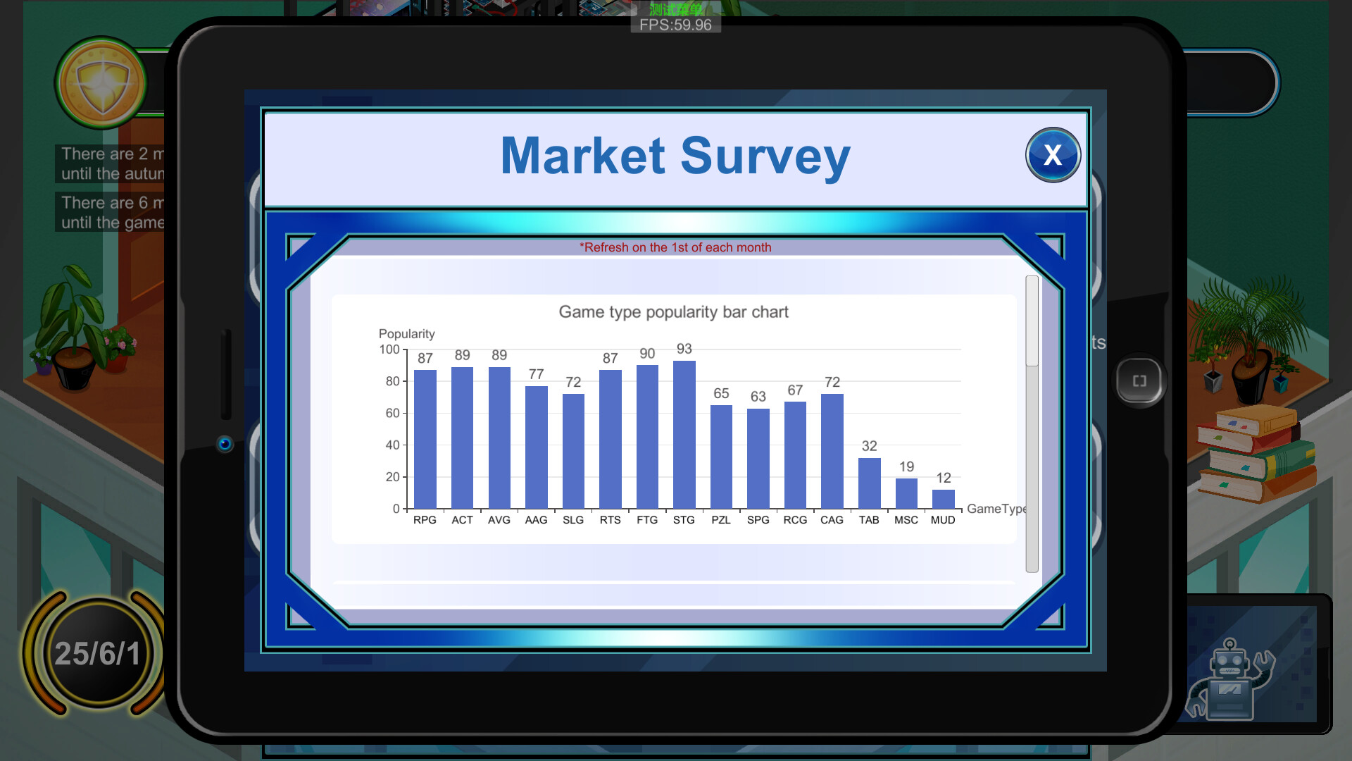 Are you filled with boundless curiosity about game development? Do you like running a game company? Do you want to witness the birth of each of your works? Do you want to learn more knowledge that you've never heard before, such as history, astronomy, life, humanities, geography... Then come on, create your own game company and become the brightest star of this era. In the game, you will run a company, and your main source of income mainly comes from product development and outsourcing development. The influencing factors of product development mainly include the various attributes of the employees, the publicity platform, and the number of diamonds used. Early outsourcing development is a good choice, and the income is usually not very high, but the advantage is that the development cycle is shorter. If you start your own product development stage, you can obtain information through market research to maximize your income. In addition, there are four knowledge competitions throughout the year, held in spring, summer, autumn, and winter. Based on the answering situation, you can obtain income. Winning at the annual award ceremony can also get a bonus. Diamonds are obtained mainly through the performance of employees during development or certain random events. The training room can enhance or reduce the attributes of employees through the completion of mini-games. For employees, you can recruit them in the talent market. You need to pay wages monthly. In the employee information, you can dismiss employees, but you need to pay a fee. If you don't pay wages for three consecutive months, the company may go bankrupt. In addition, some small game details will be described in the encyclopedia.
